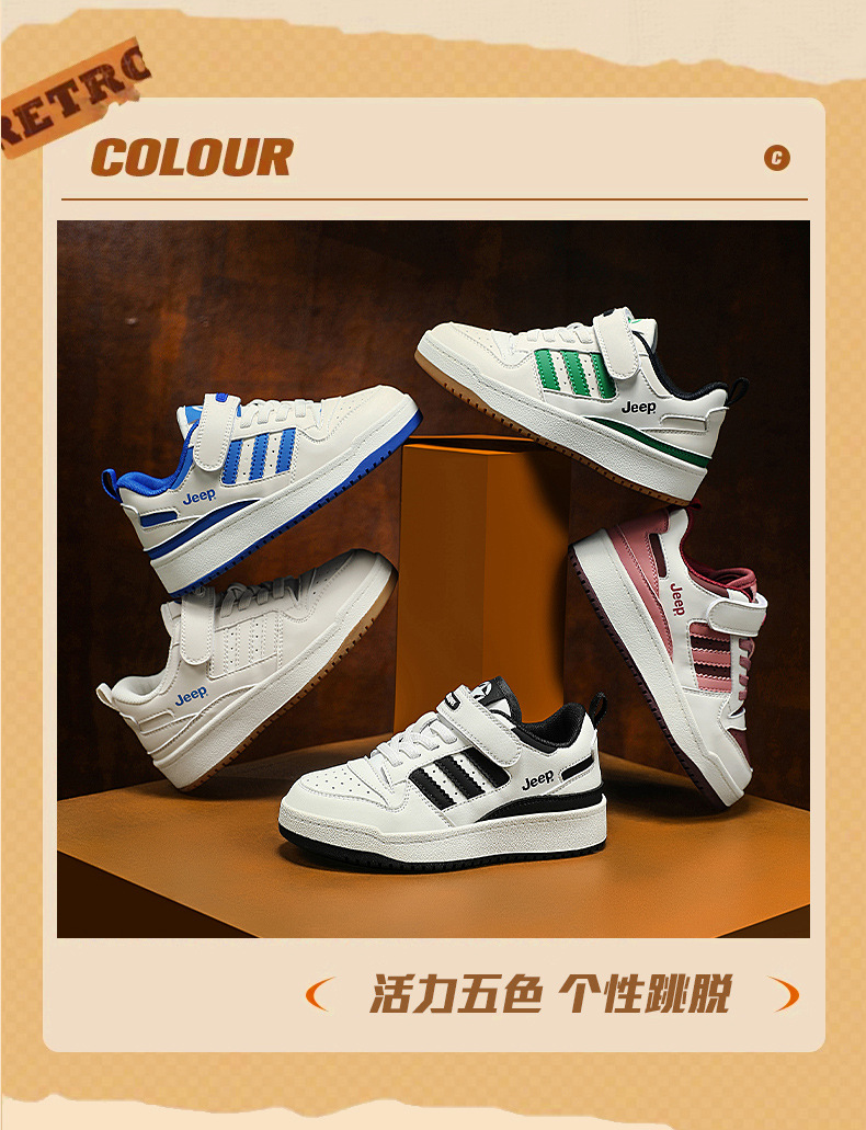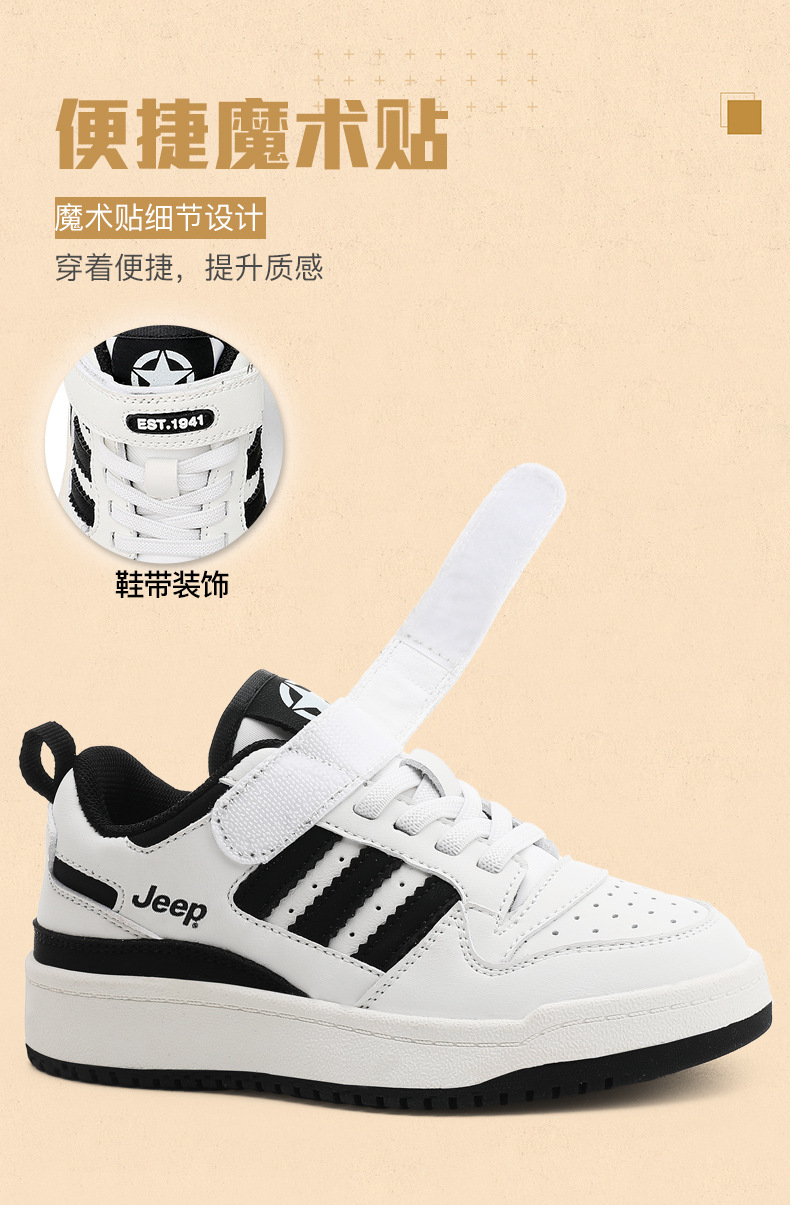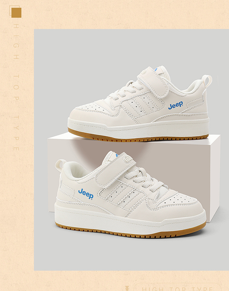 지프 어린이 보드 신발 소년 운동화 2024 가을 새로운 캐주얼 흰색 신발 벨크로 통기성 여성 신발