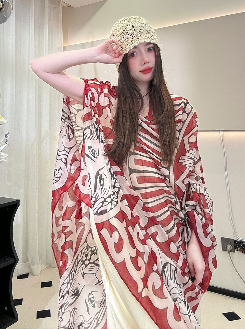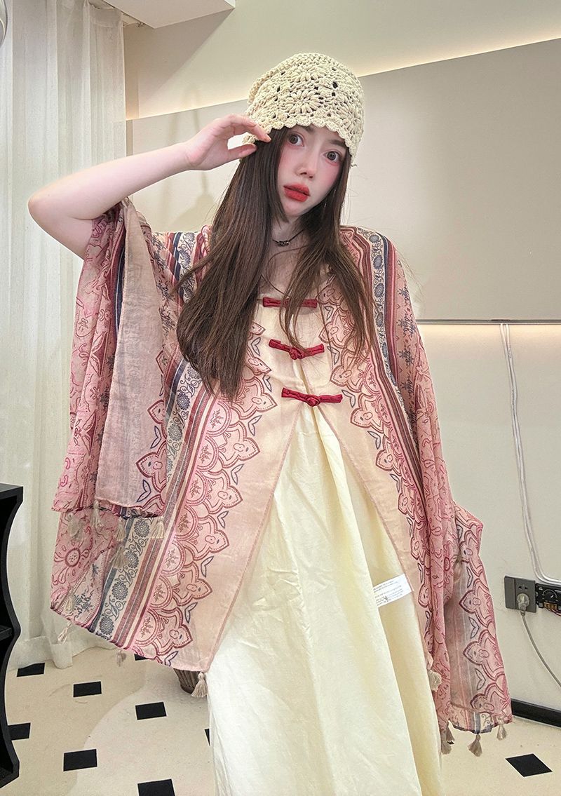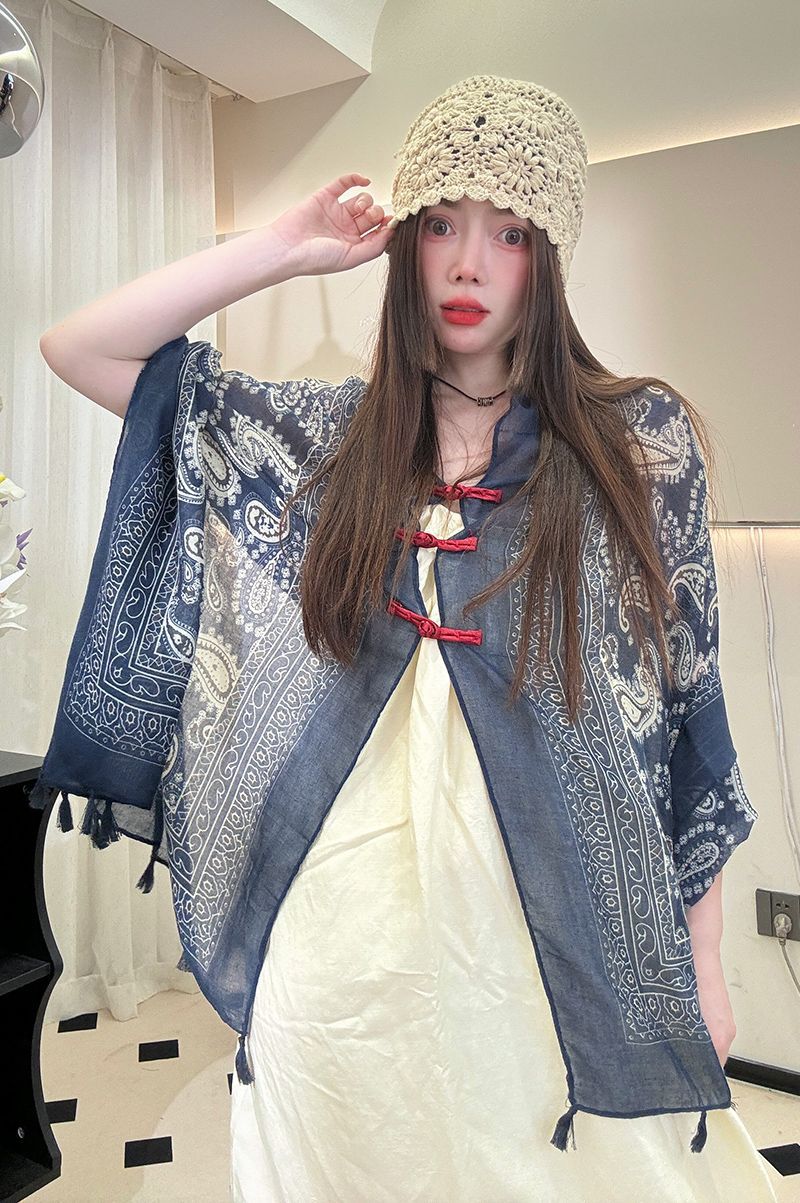 [티란데] 여름 민족 스타일 목도리 빈티지 버클 선스크린 코튼 목도리 블라우스 올매치 비치 타월