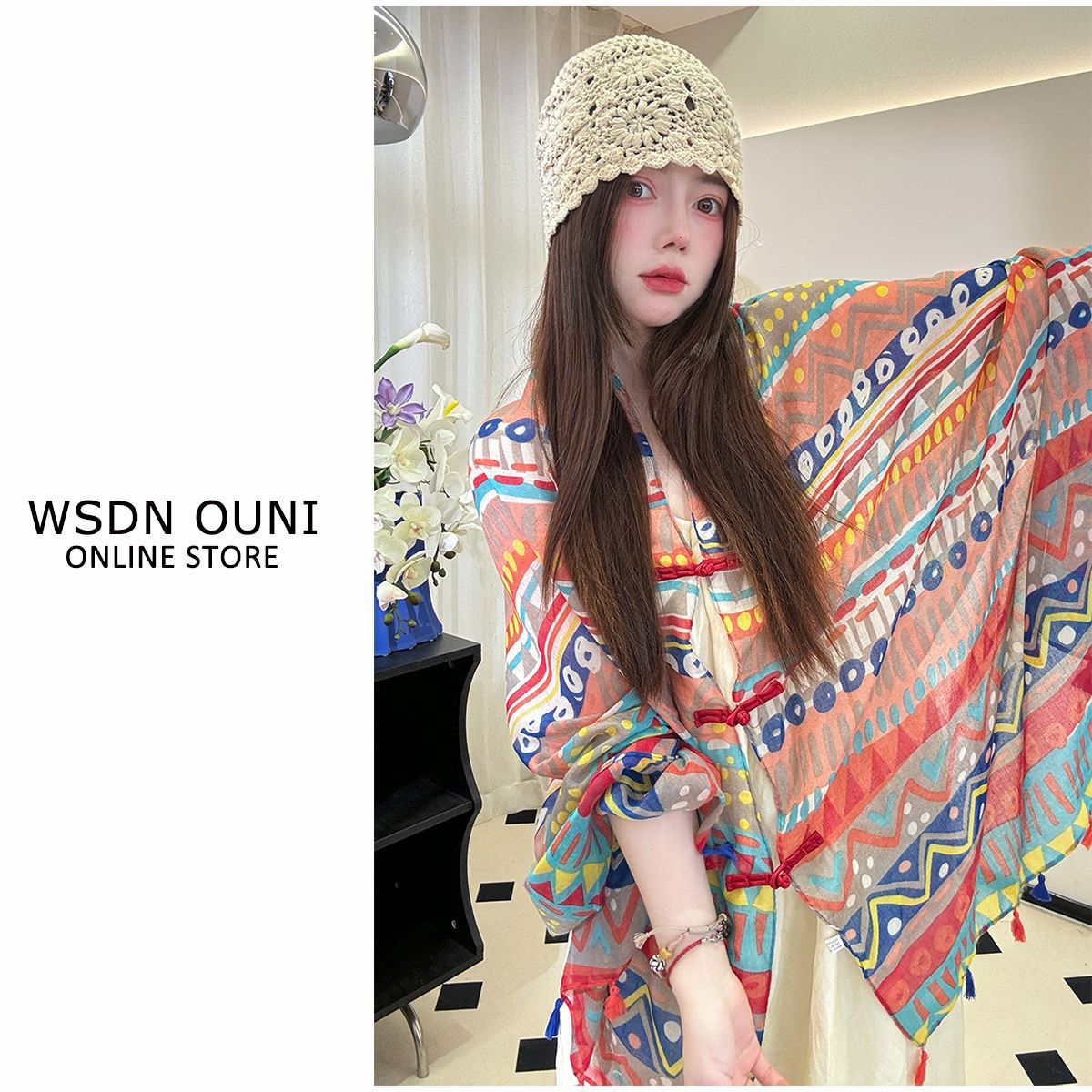 [티란데] 여름 민족 스타일 목도리 빈티지 버클 선스크린 코튼 목도리 블라우스 올매치 비치 타월스토어 가기