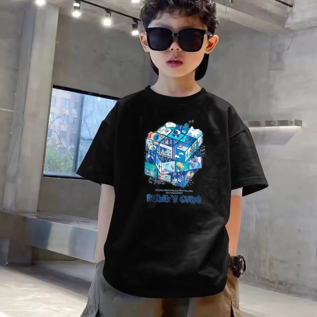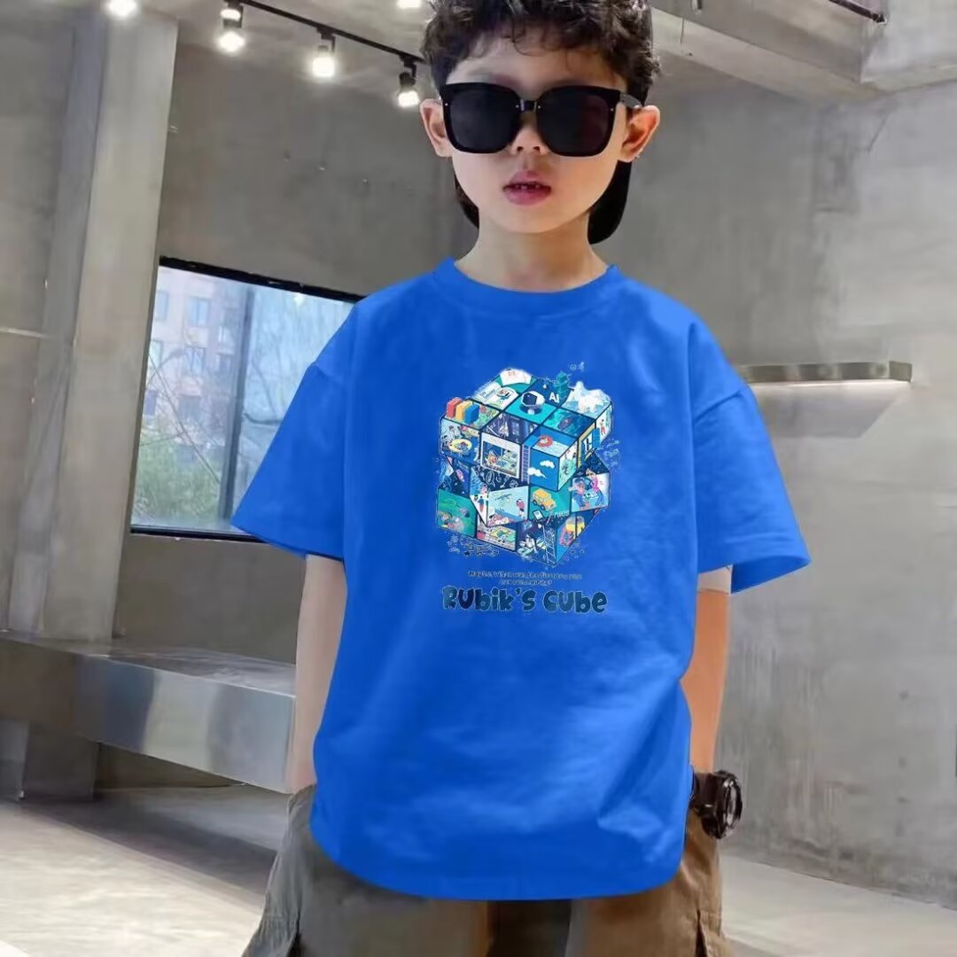 소년 반팔 티셔츠 여름 착용 2025 새로운 어린이 소녀 탑 여름 아기 소년 반팔 라운드 넥 티셔츠스토어 가기