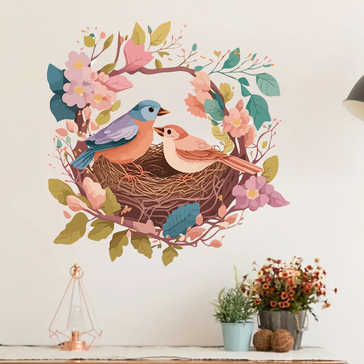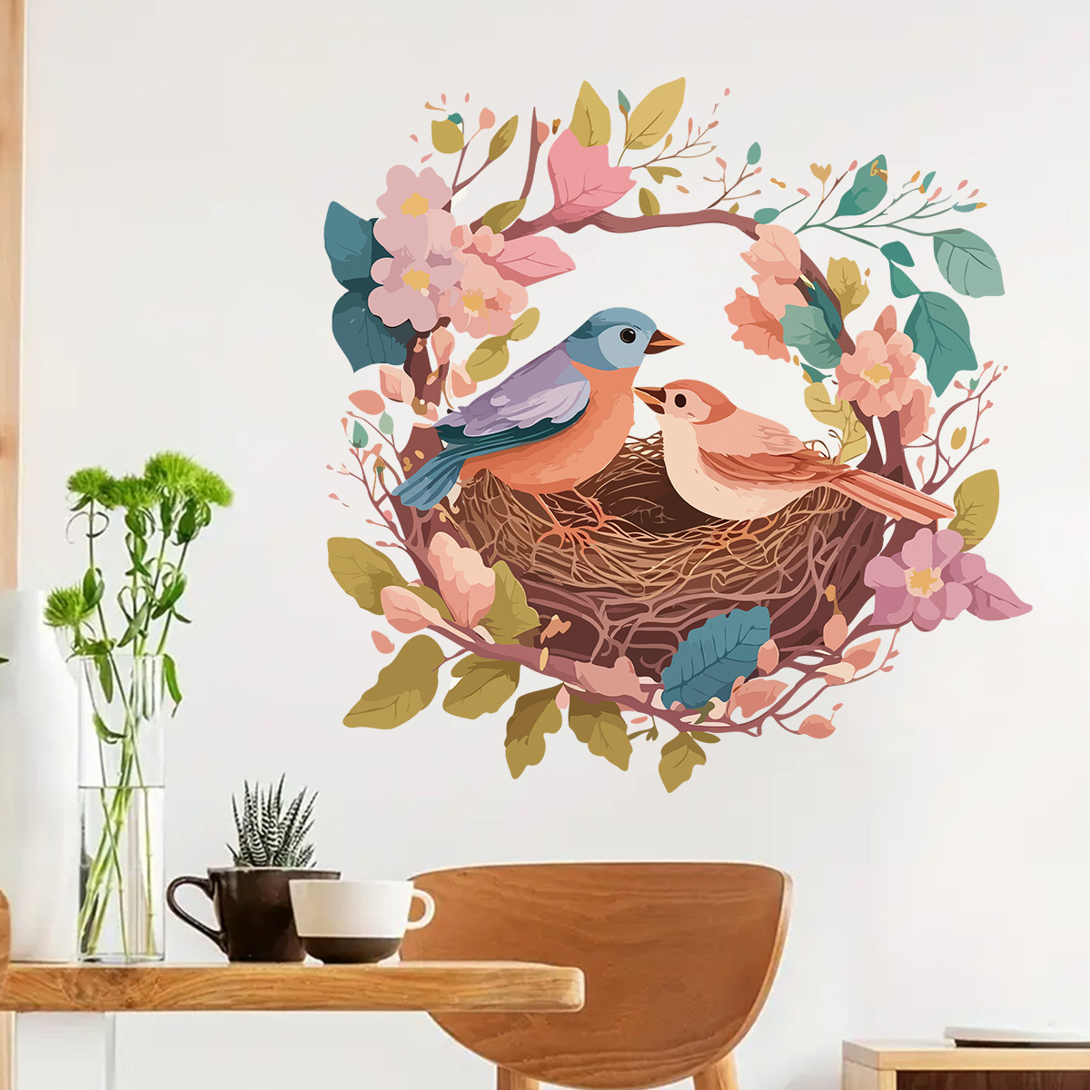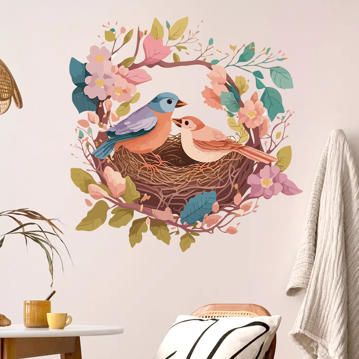 아름다운 소녀 스타일 룸 배경 벽 장식 스티커 BR33985 만화 컬러 버드 홈 셀프 접착 벽 스티커스토어 가기