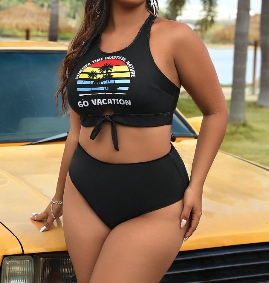 2024 새로운 AliExpress 유럽과 미국의 뚱뚱한 여자 플러스 사이즈 수영복 숙녀 통통녀 프린트 레이스 업 비키니 수영복 도매스토어 가기