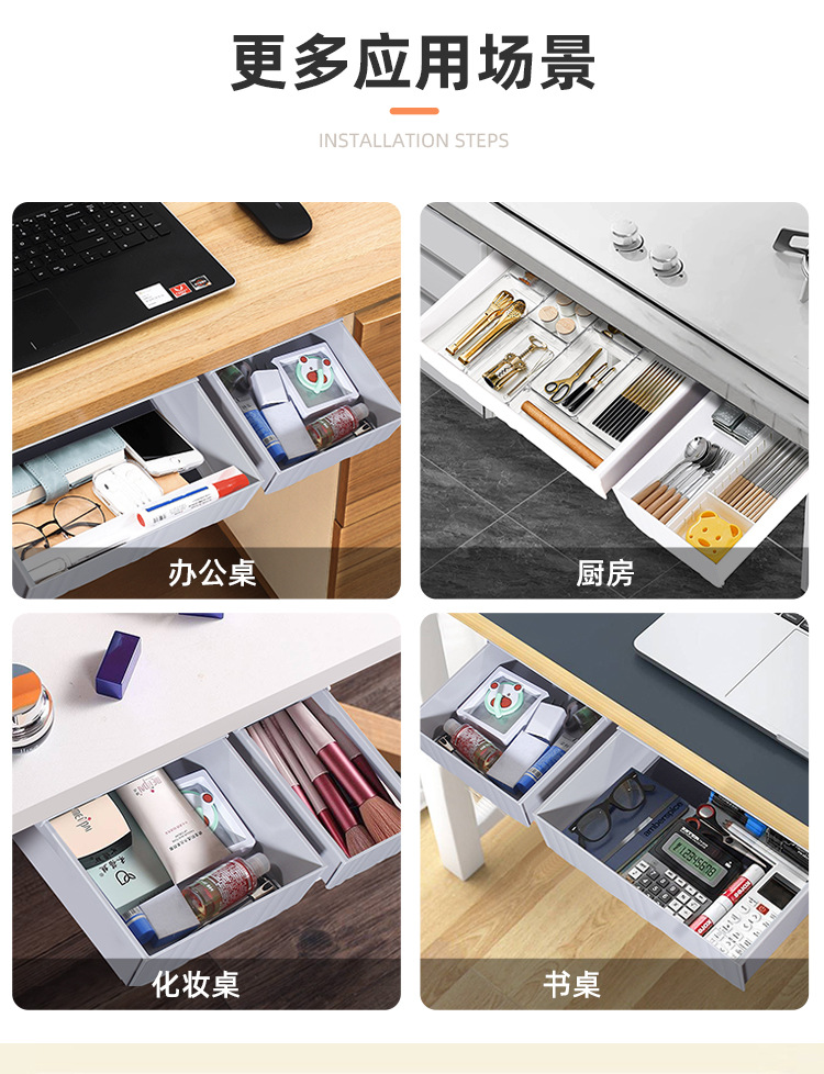 책상 아래 서랍 문구 보관함 사무실 데스크탑 보이지 않는 유물 언더 데스크 숨겨진 보관 랙