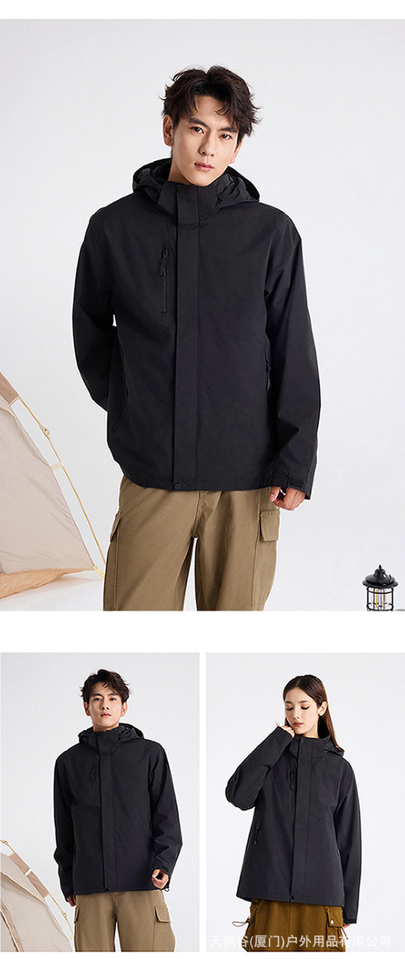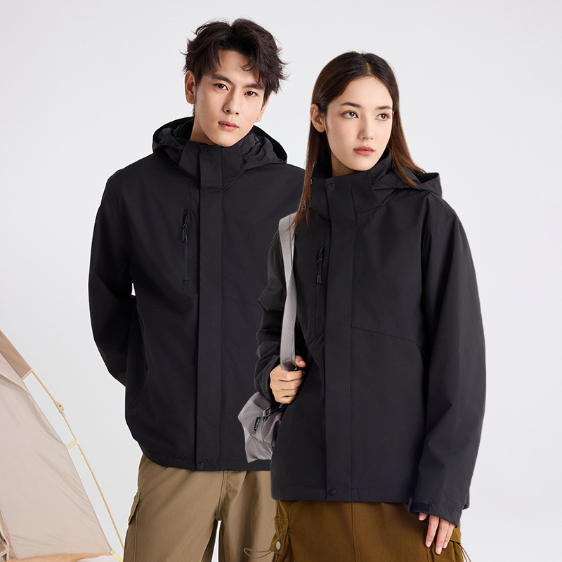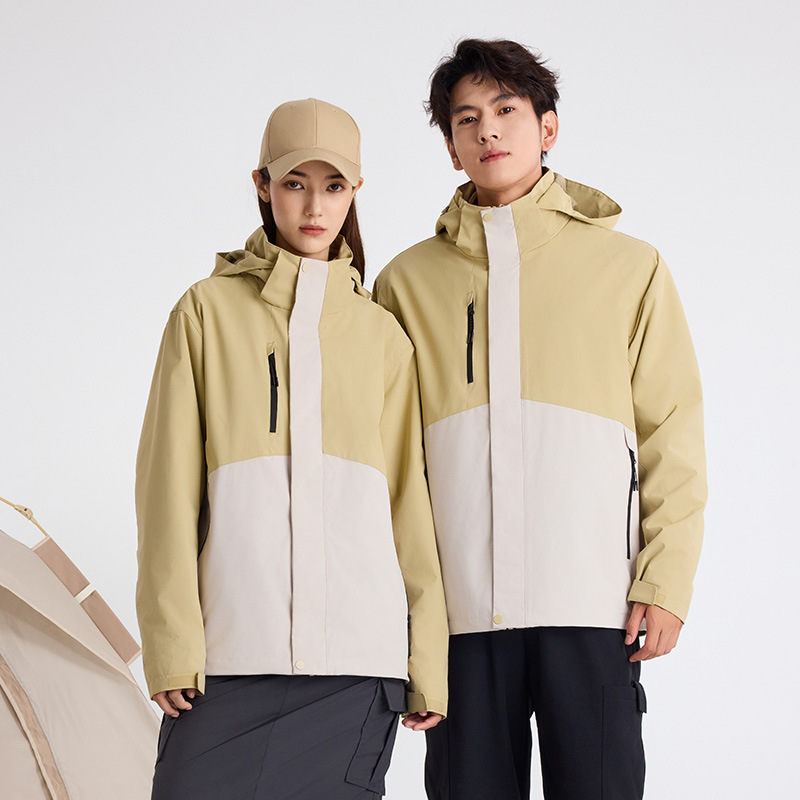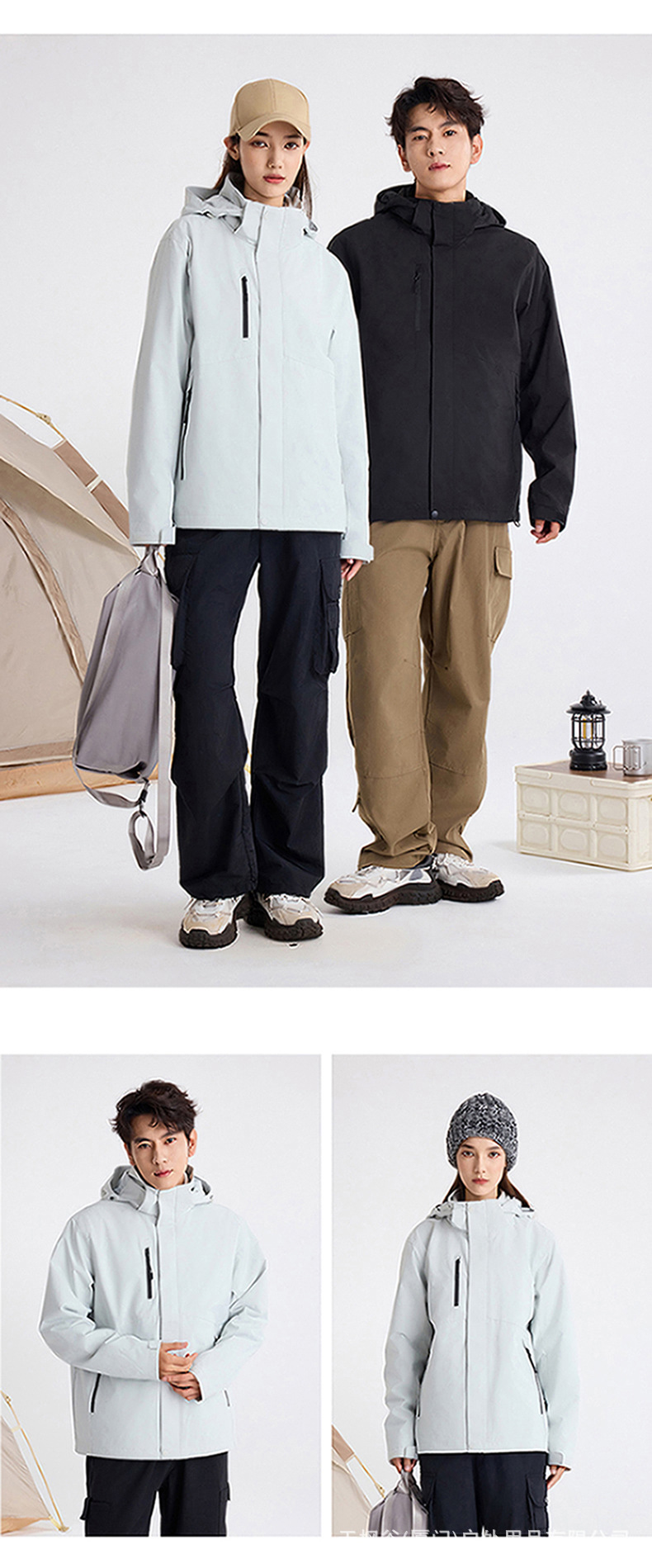 같은 스타일의 충전 의류 투피스 야외 방풍 방수 등산 세트 남성 코트 기업 작업복 여성 맞춤 제작스토어 가기