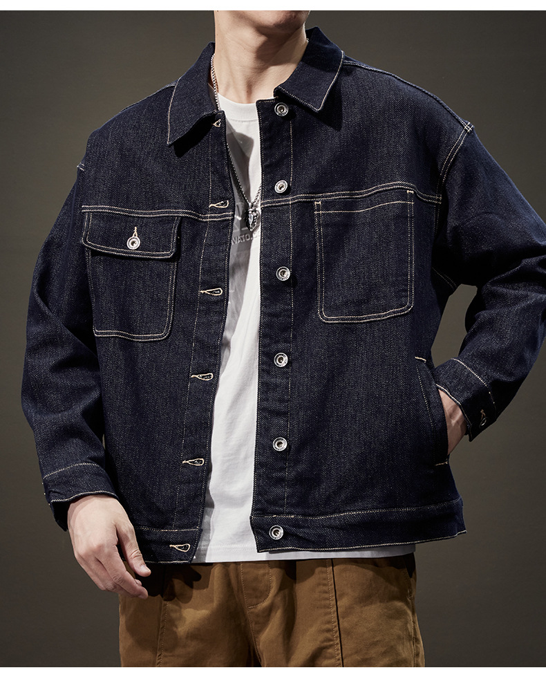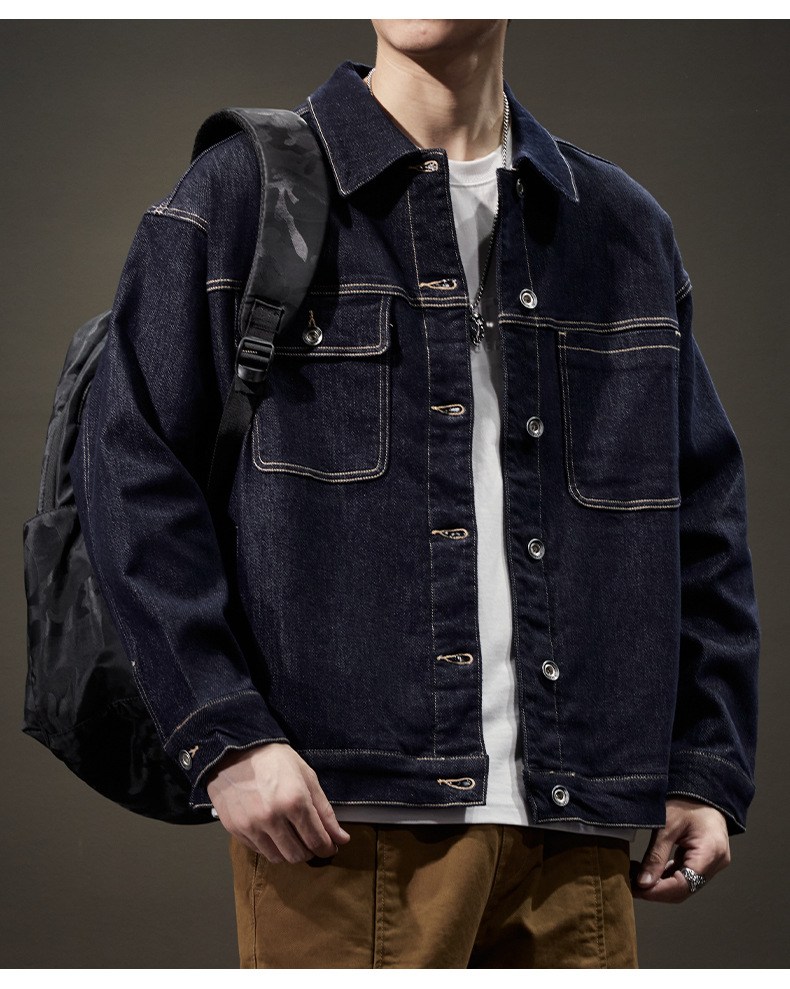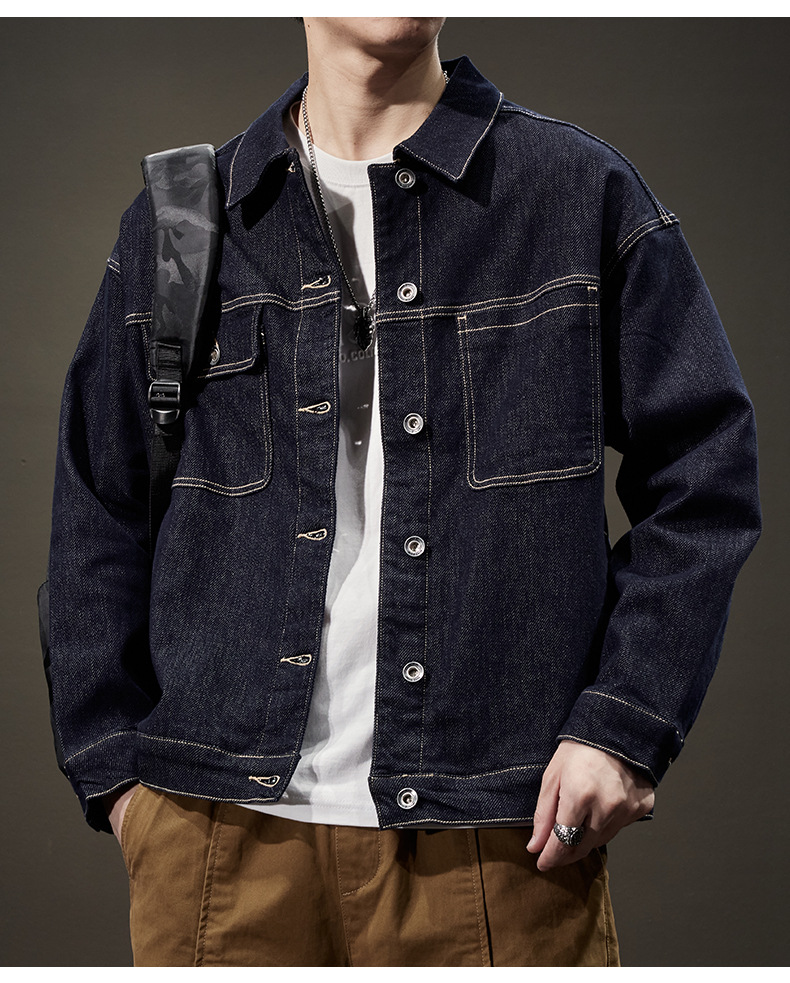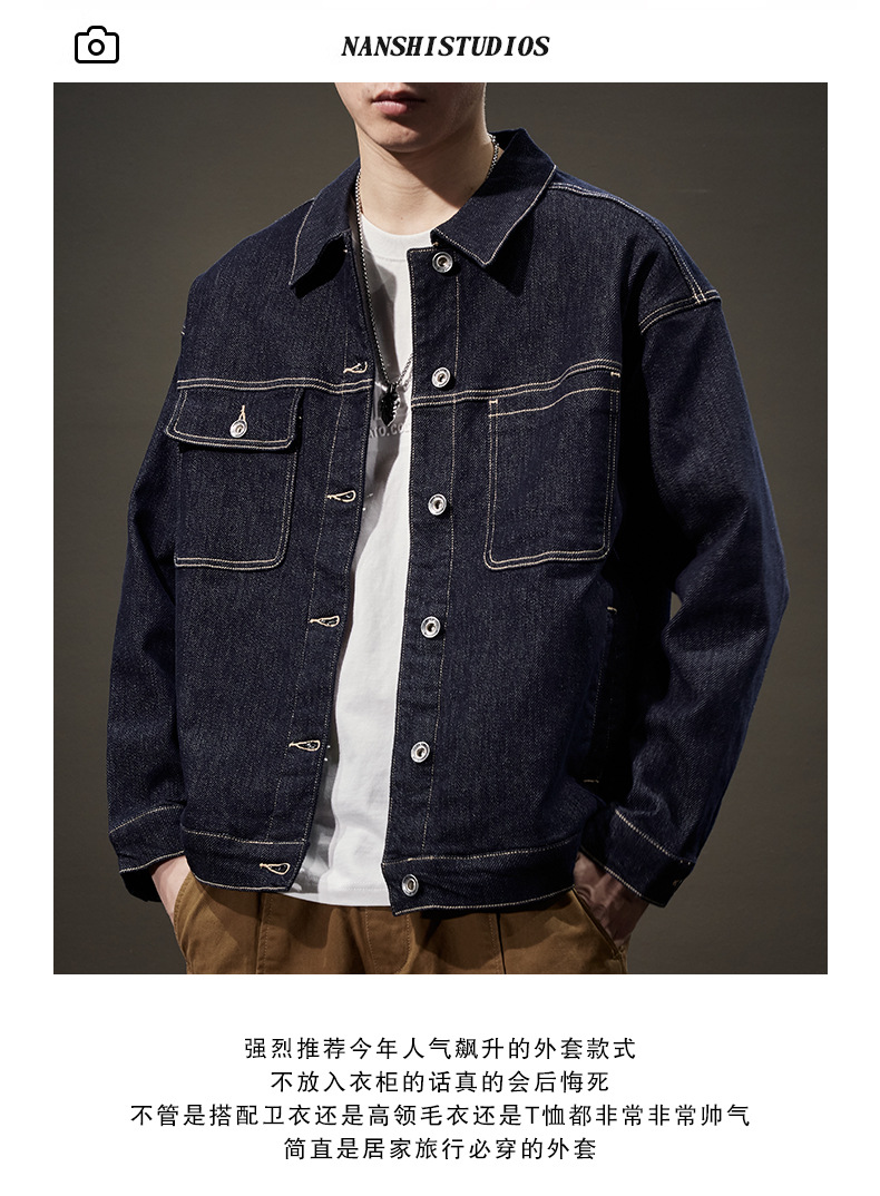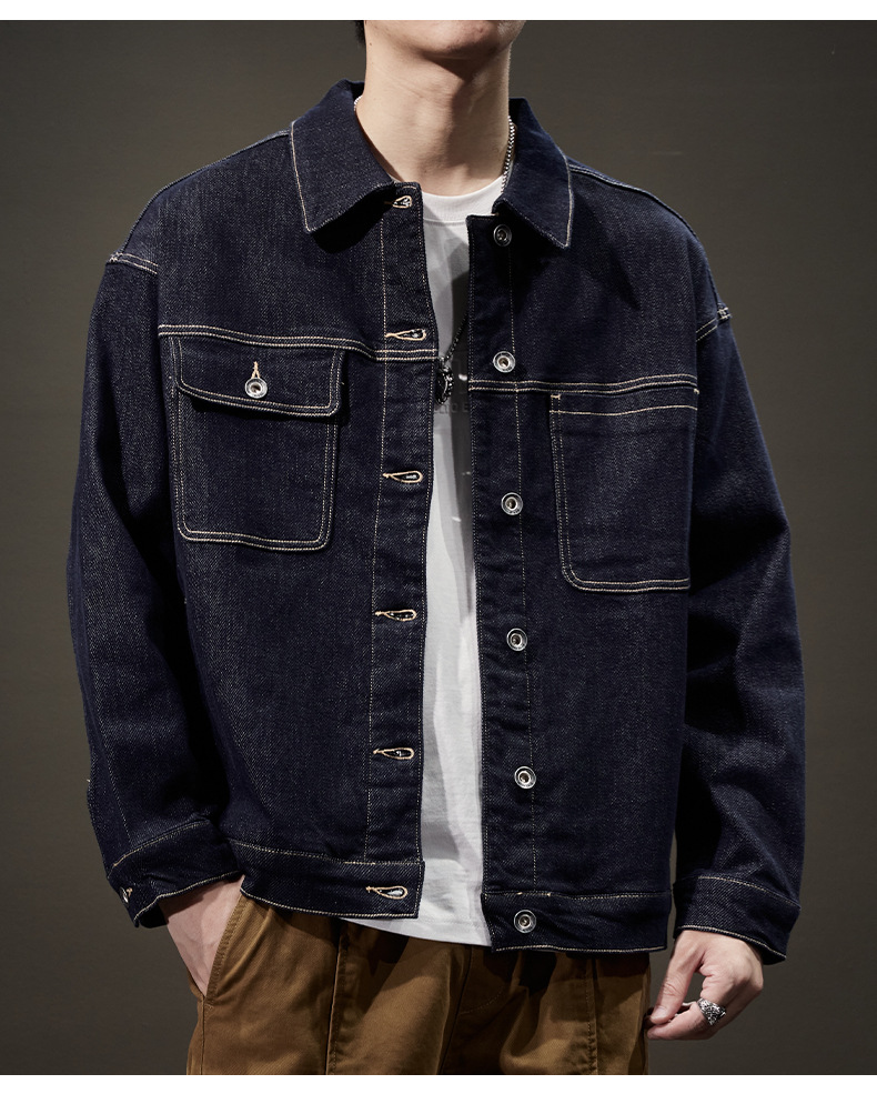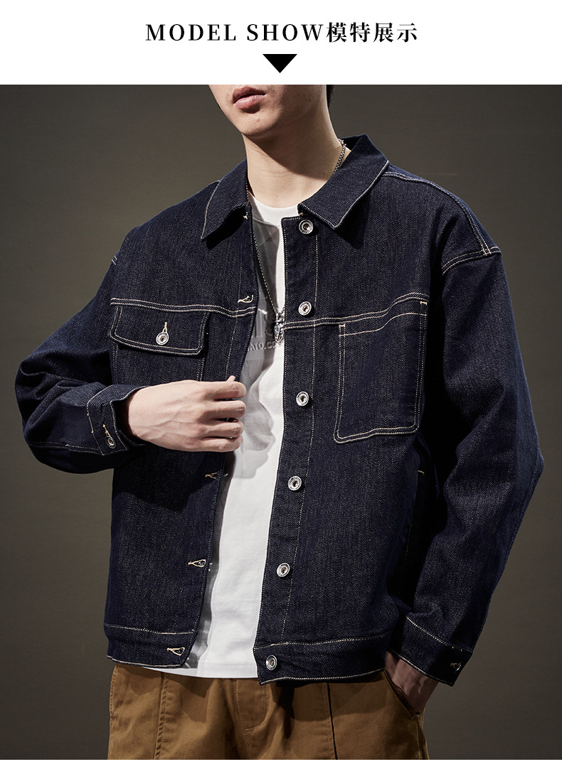 2024 새로운 가을과 겨울 하이 엔드 멀티 포켓 세척 데님 코트 남성 긴팔 옷깃 드레스 데님 재킷스토어 가기