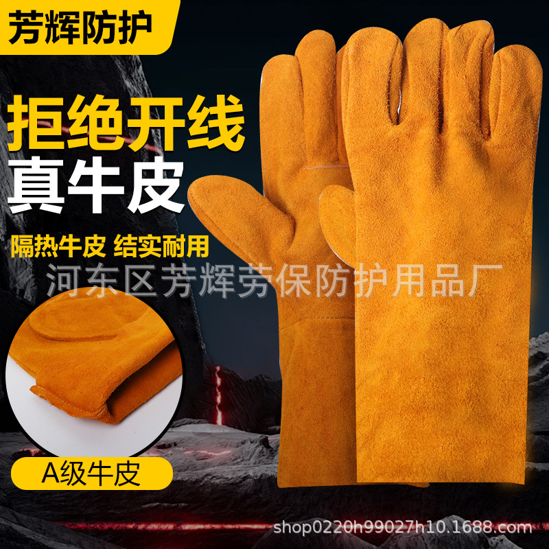 Fanghui cowhide 용접 장갑 고온 내마모성 단열재는 라인을 열지 않습니다 연장 노동 보호 용접기 보호 장갑 도매스토어 가기