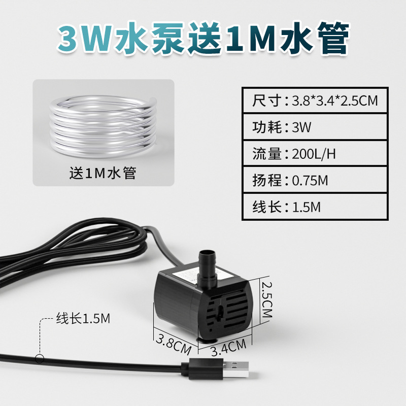 • USB 워터 펌프 + 1m 수도관 (플레이트 없음)