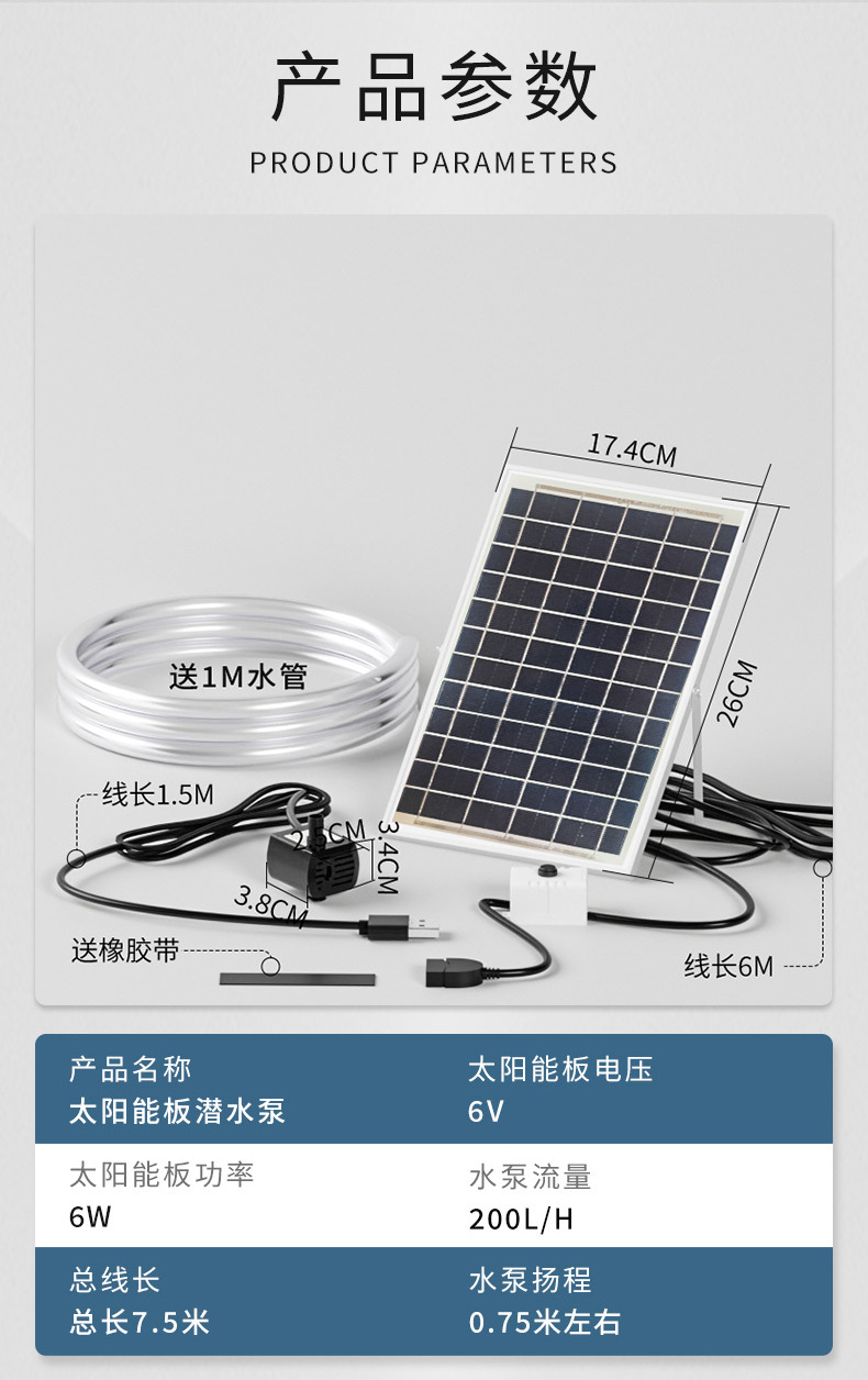 • 6V6W 보드 + USB 워터 펌프(USB 인터페이스 케이블 7.5m )