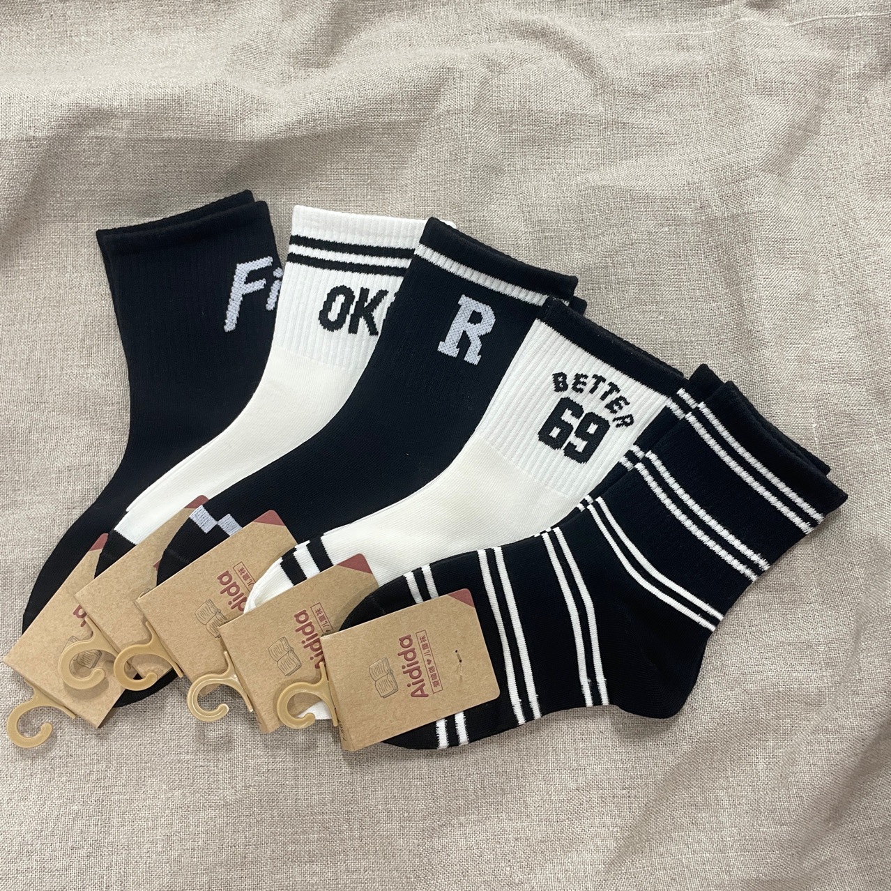 흑백 줄무늬 양말 남성용 스타킹, 트렌디 한 가을과 겨울 탈취제 땀 흡수성 남성 하이 탑 튜브 양말 도매