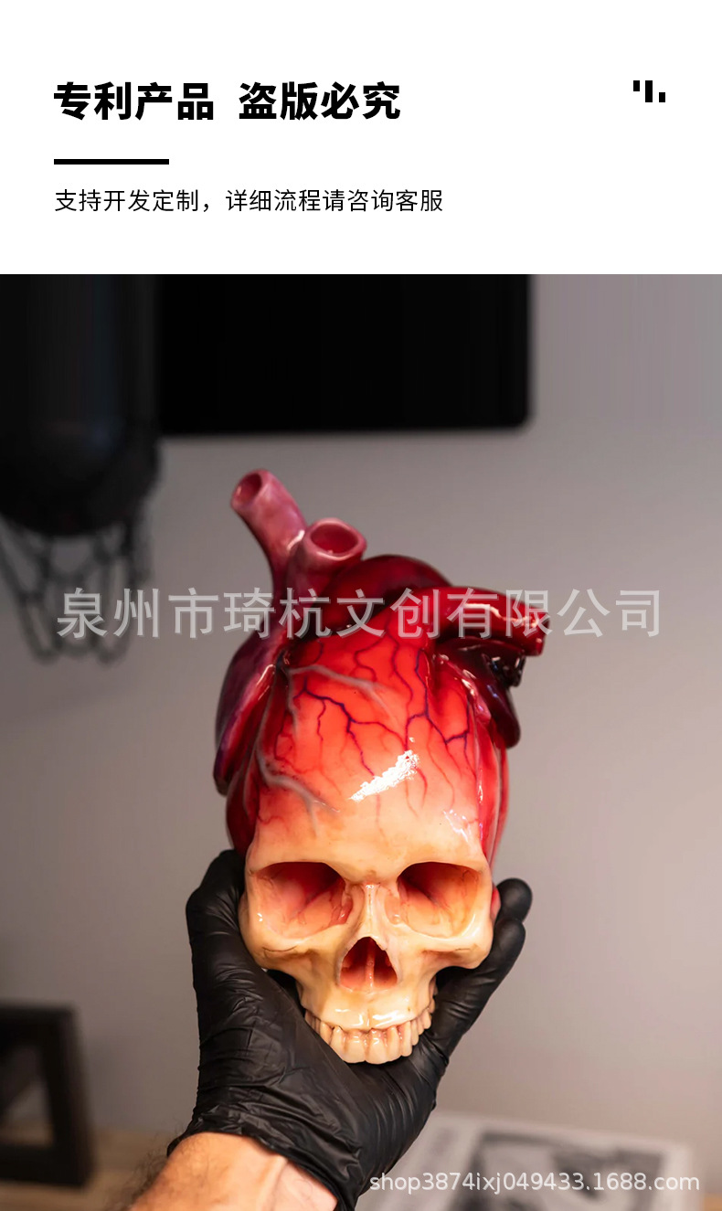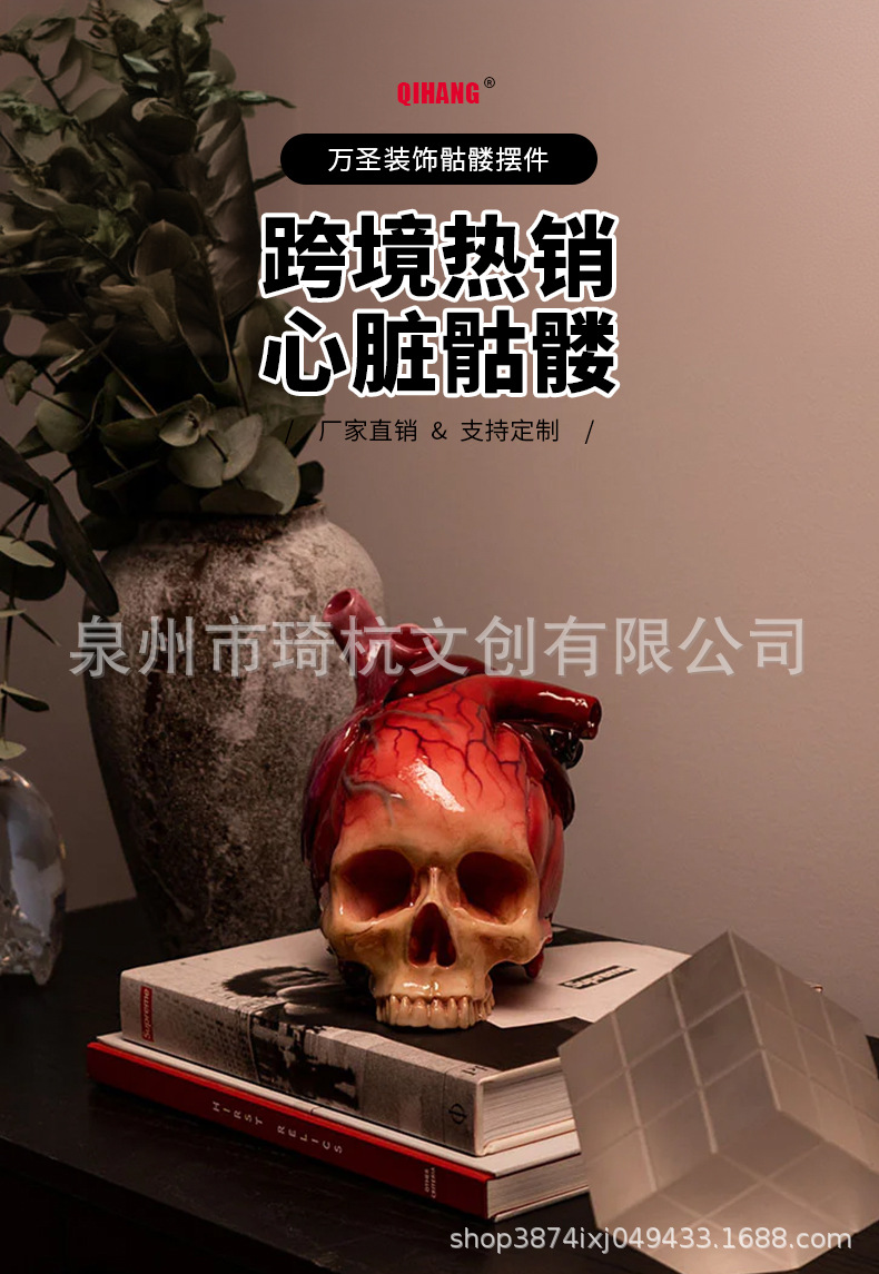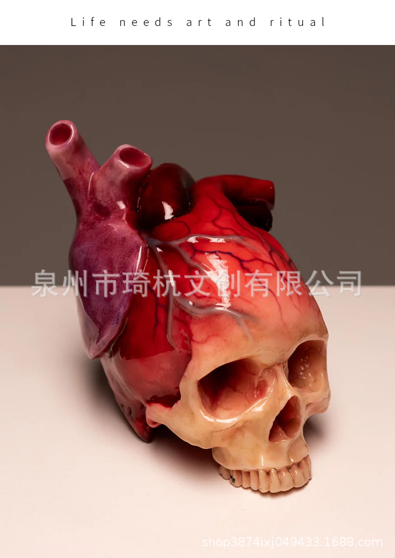 국경 새 심장 해골 수지 장식품 홈 거실 바탕 화면 창조적 인 장식 할로윈 선물스토어 가기