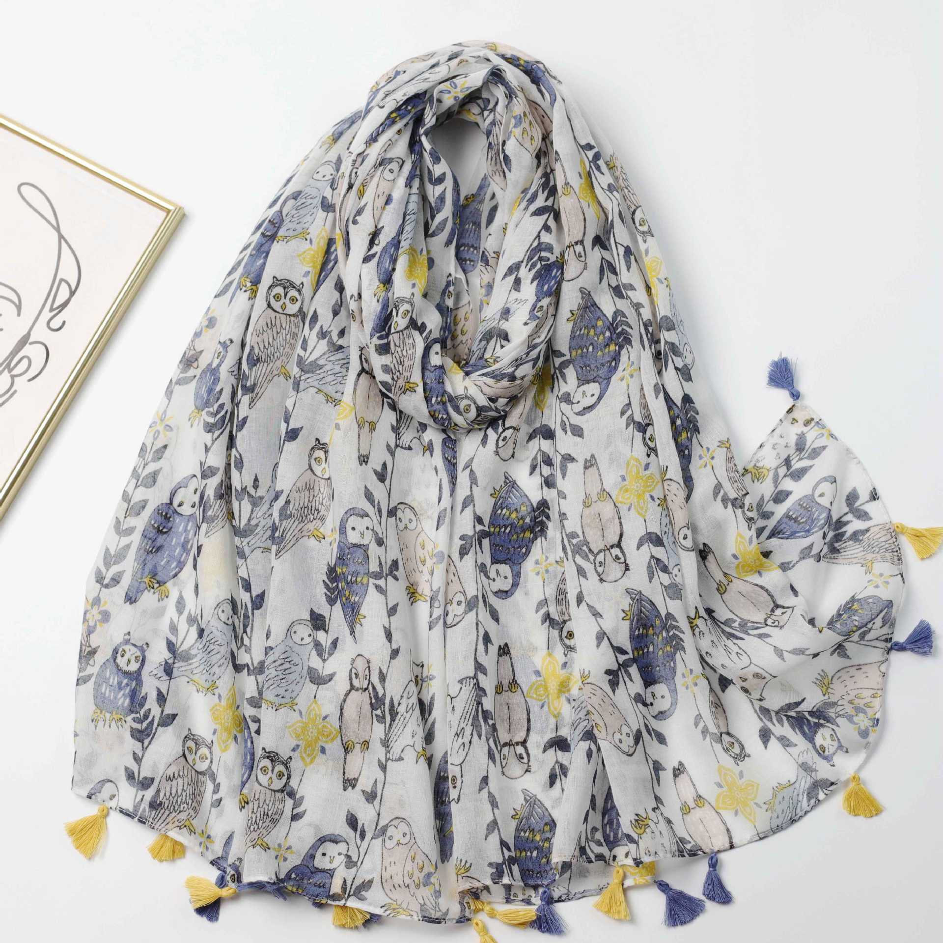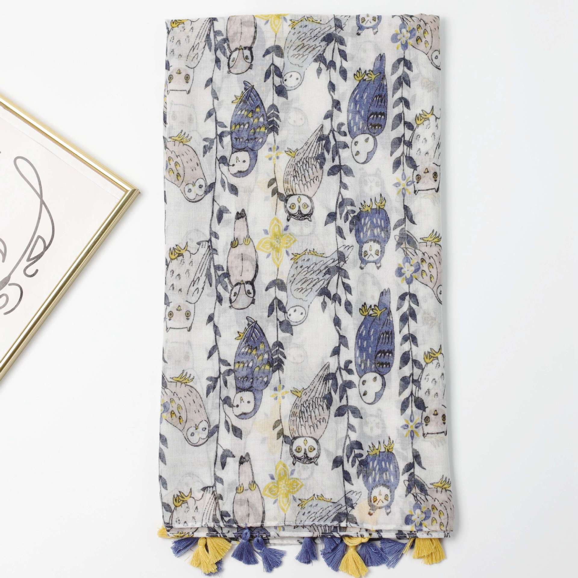 대외 무역 국경 간 라이브 방송 지점 올빼미 인쇄 실크 스카프 여름 선 스크린 여행 목도리 패션 올 매치 얇은 실크 스카프