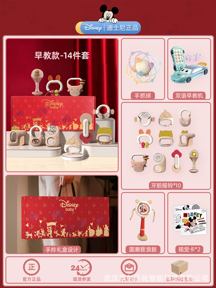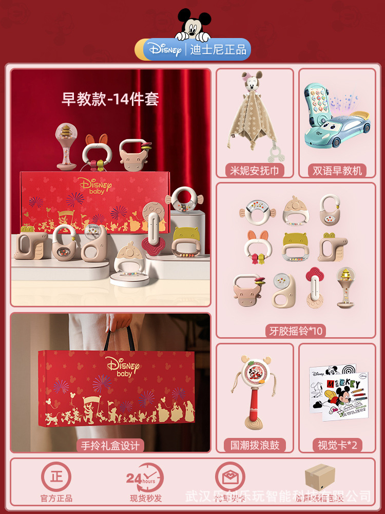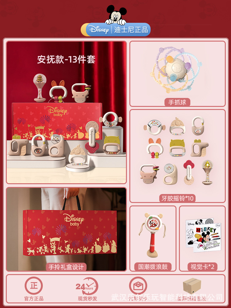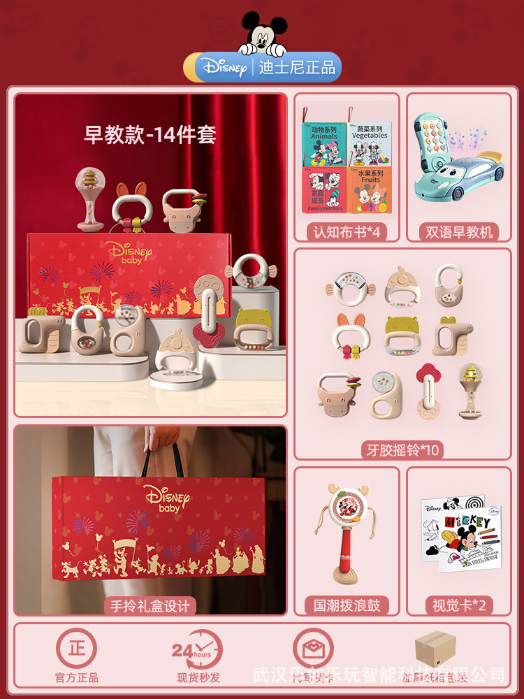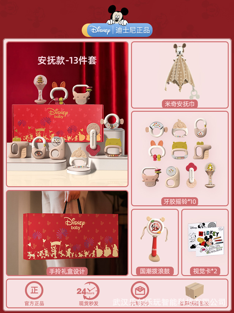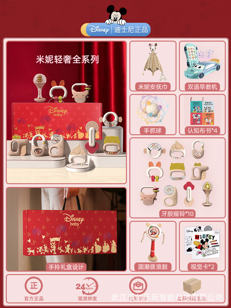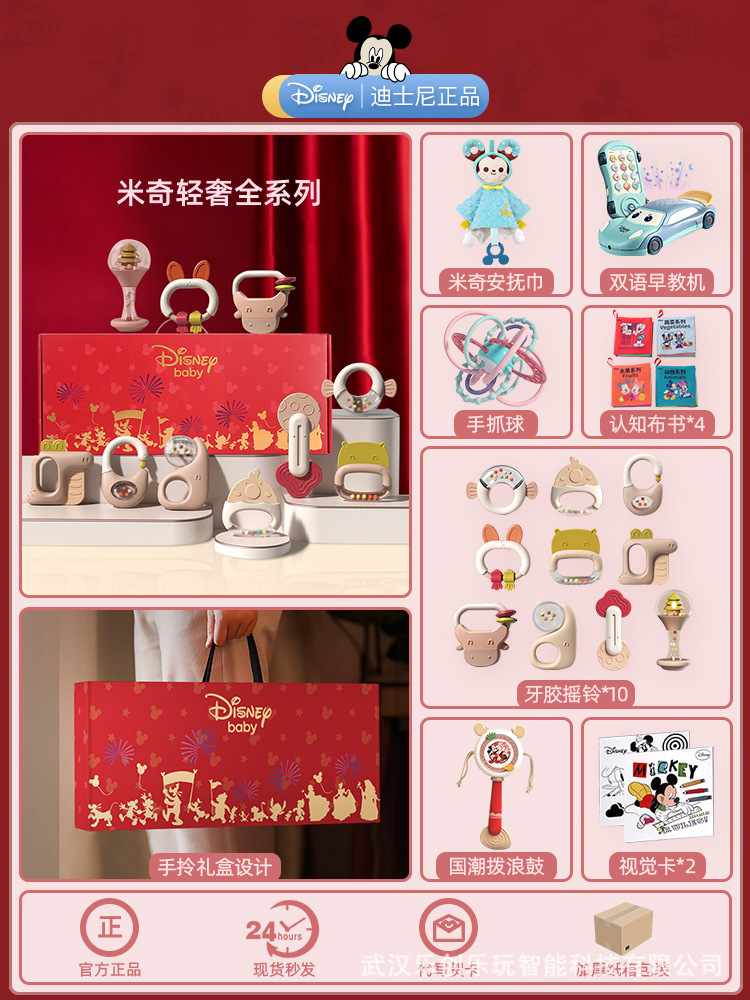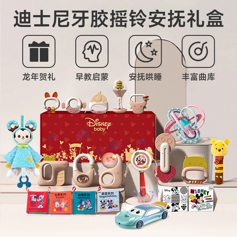 소년 소녀를위한 디즈니 신생아 아기 딸랑이 장난감 선물 상자 교육 조기 교육 0-3-6 개월 보름달 선물스토어 가기