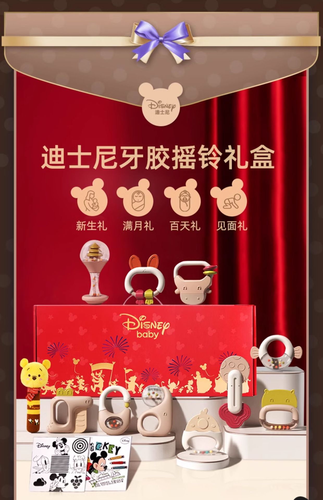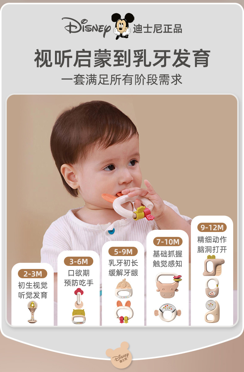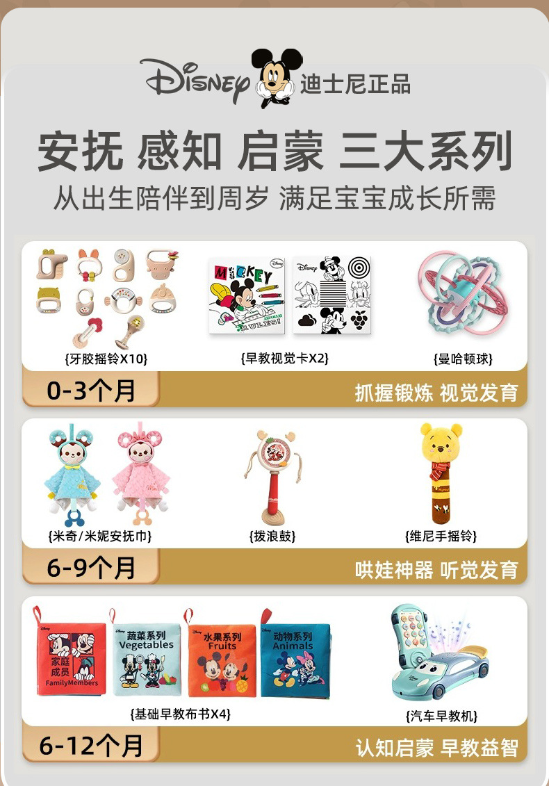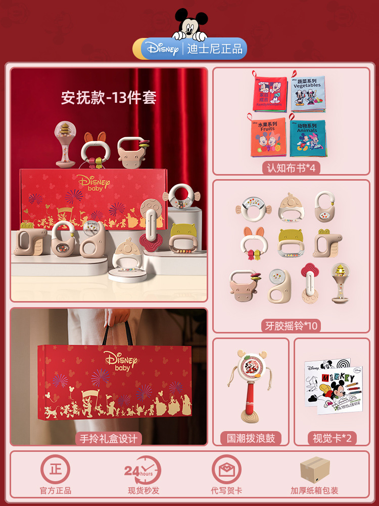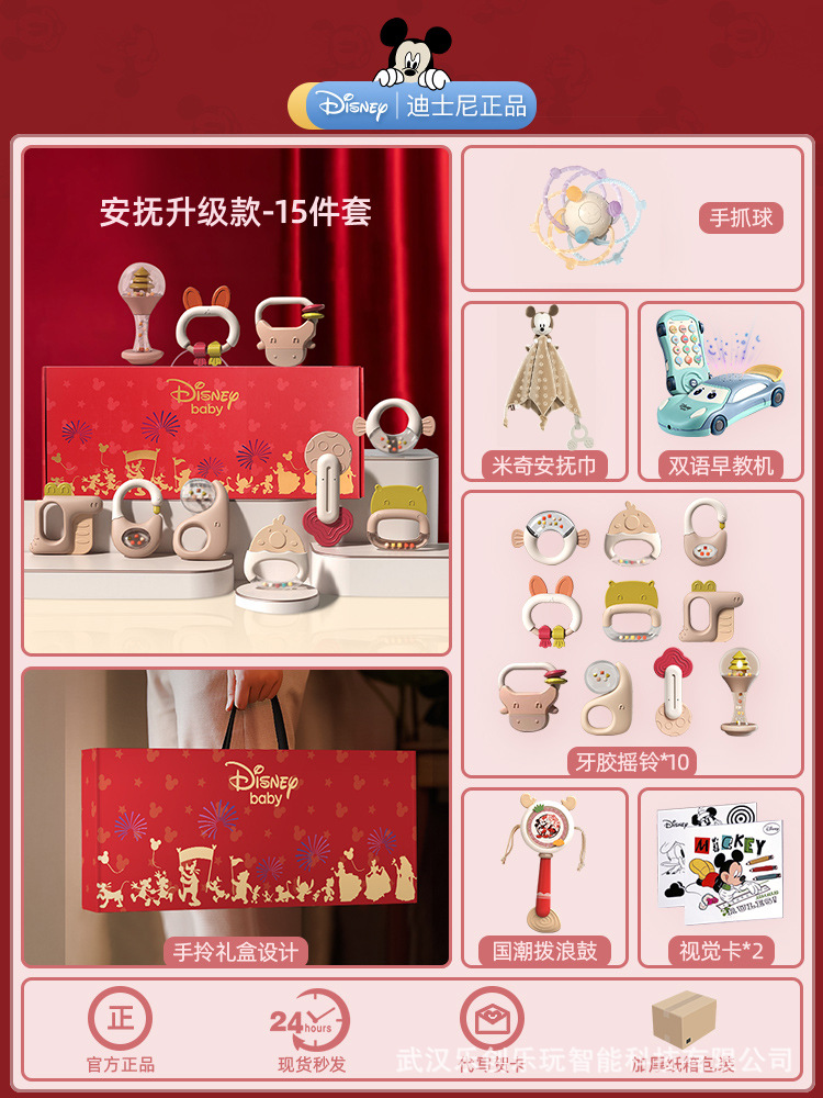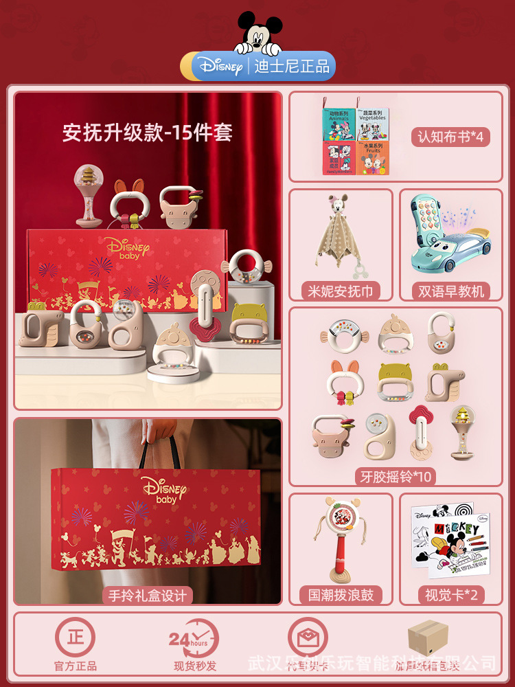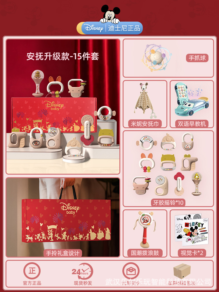 소년 소녀를위한 디즈니 신생아 아기 딸랑이 장난감 선물 상자 교육 조기 교육 0-3-6 개월 보름달 선물스토어 가기