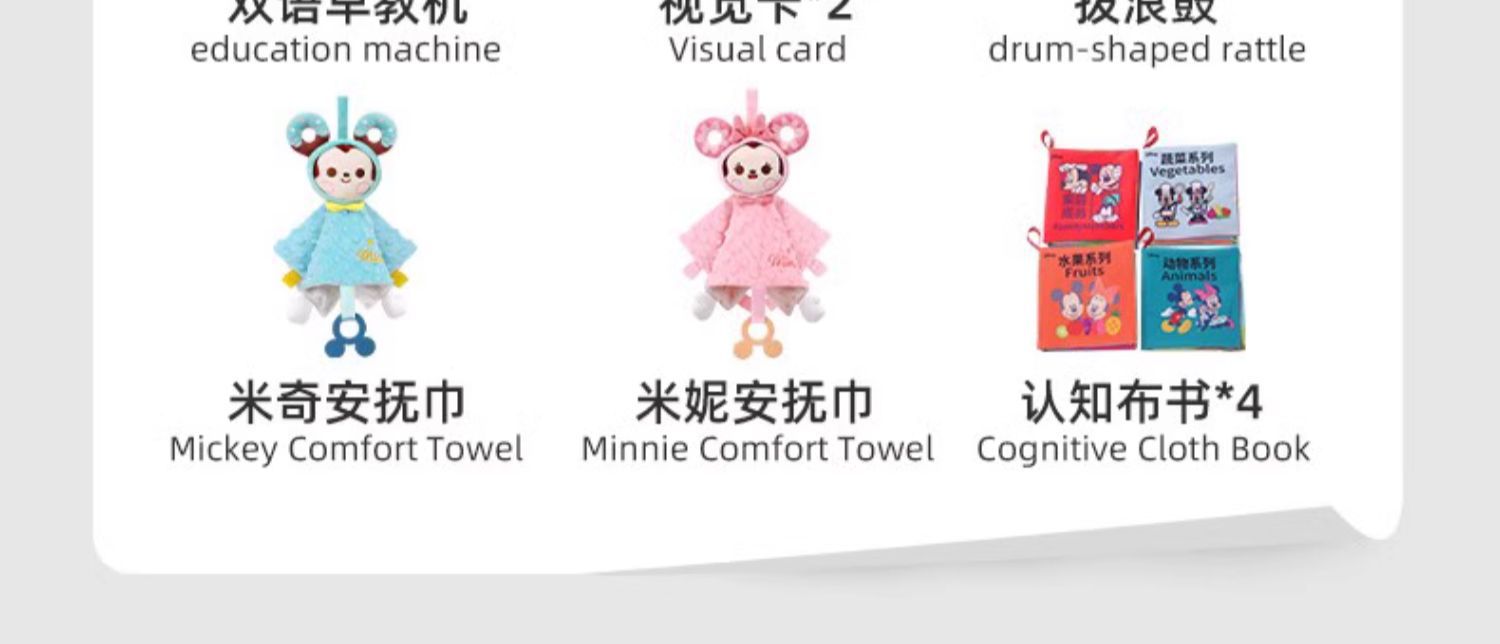 • [치발기 10개 + 비주얼카드 + 딸랑이 + 자동차 조기교육기 + 미키 컴포트 타올 + 헝겊책]
