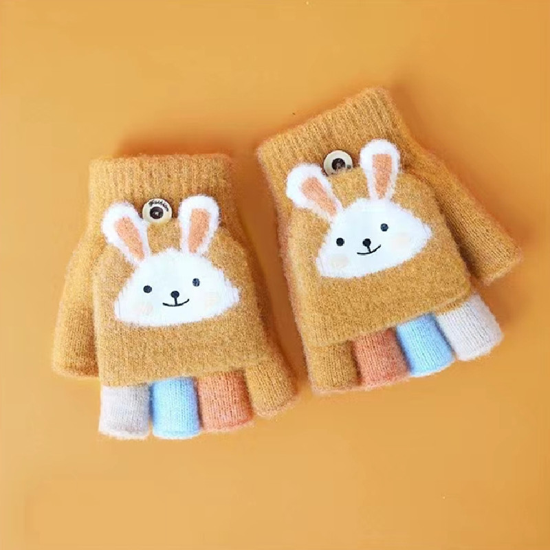 어린이 장갑 가을 겨울 남녀 아기 따뜻한 장갑 유아 다섯 손가락 초등학생 쓰기 반 손가락 플립 장갑