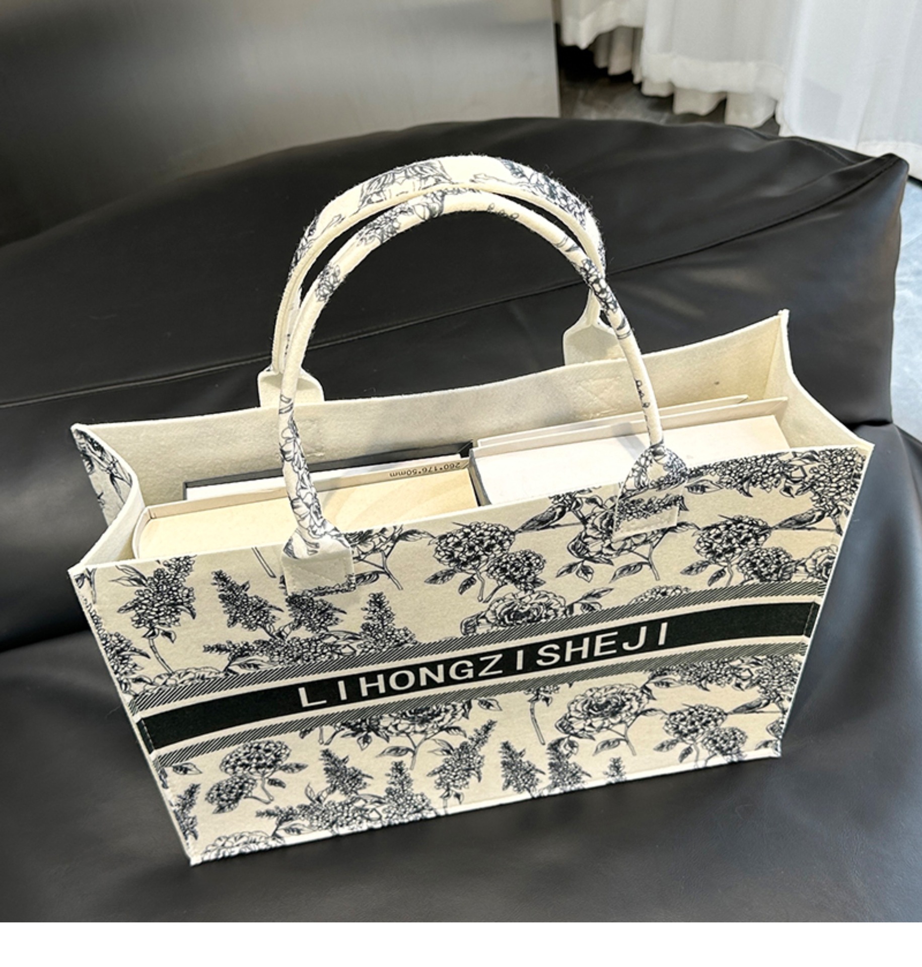 고급스러운 명품 스타일의 트렌디한 대용량 출퇴근 비즈니스 펠트 선물 가방, 중국풍 청화백자 디자인스토어 가기