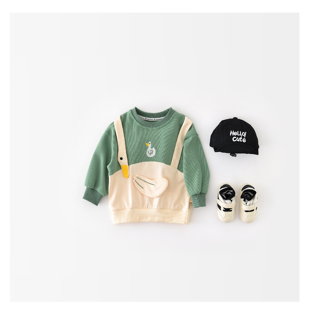 소년의 땀 가을 옷 아이들의 새로운 어린 소년 대조 컬러 바느질 아이들의 큰 거위 테이프 톱 93570스토어 가기