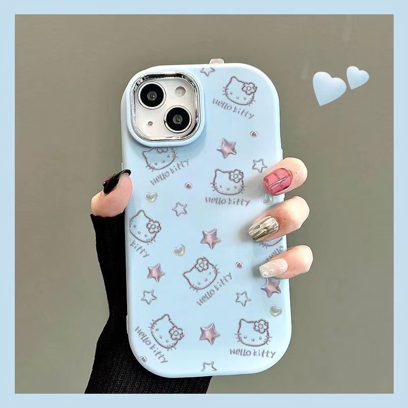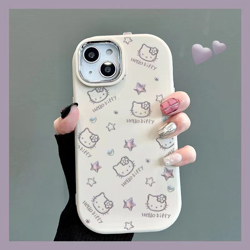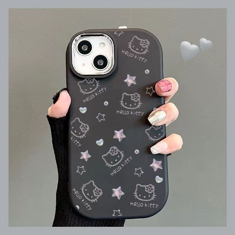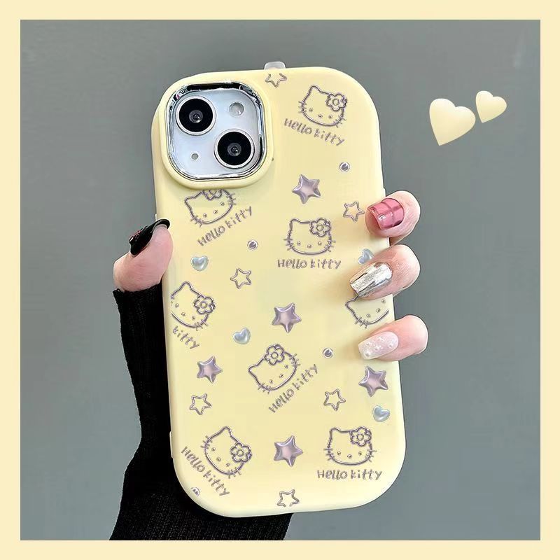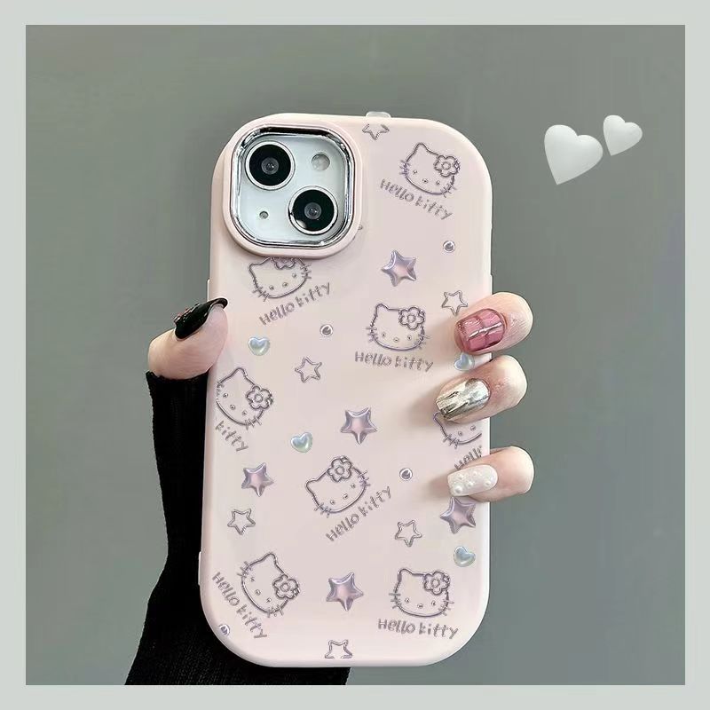 Apple 15promax 뚱뚱한 소녀 휴대 전화 케이스 IP14 실리콘 전기 도금 프레임 인터넷 연예인 14에 적합한 스타 헬로 키티