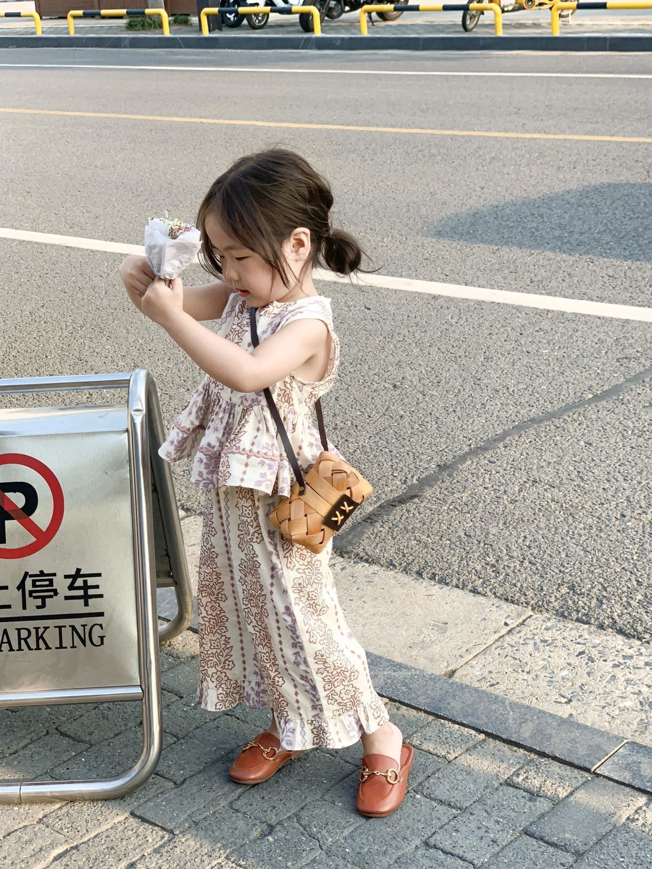 MDD 아동복 어린이 꽃 세트 2024 새로운 소녀 민족 스타일 한국 스타일 민소매 탑 레이스 스트레이트 바지스토어 가기