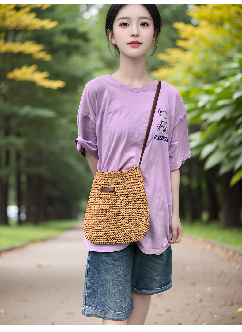 국경 간 밀짚 가방 어깨 여성 한국 패션 2024 새로운 스타일 해변 크로스 바디 여성 가방 공장