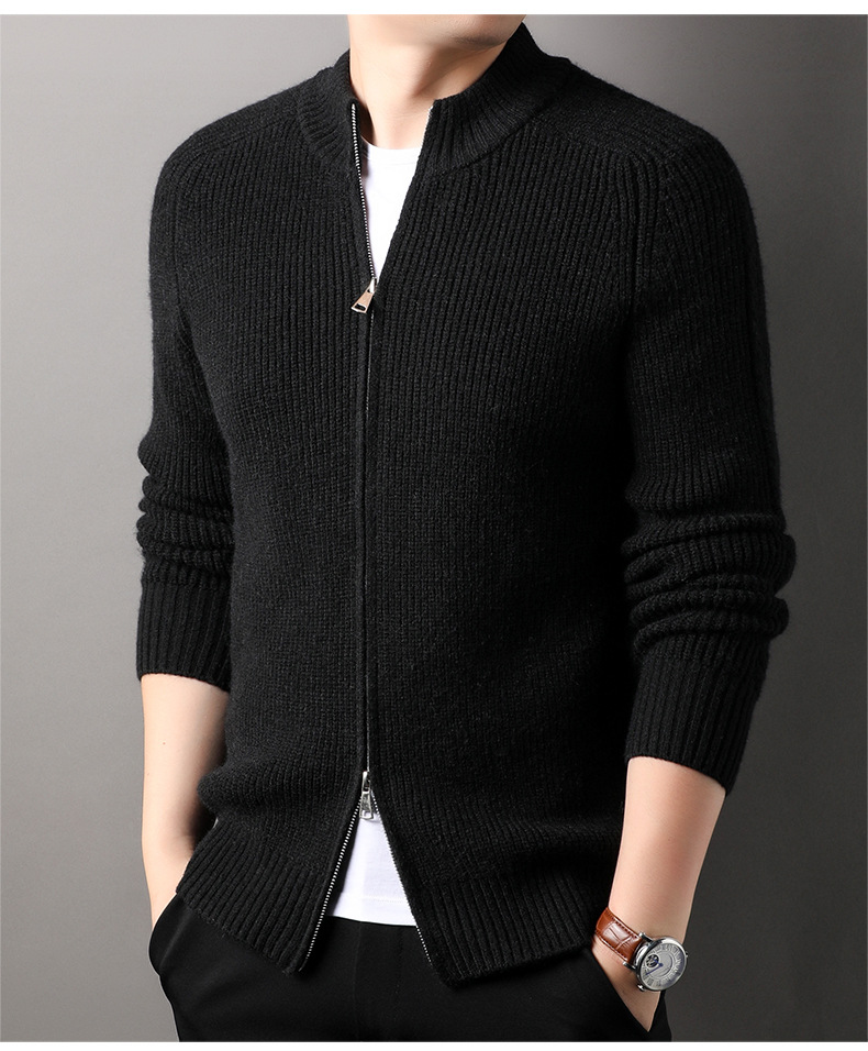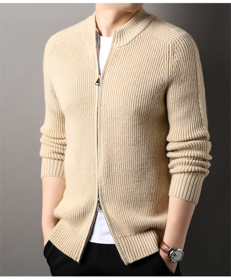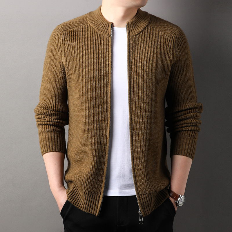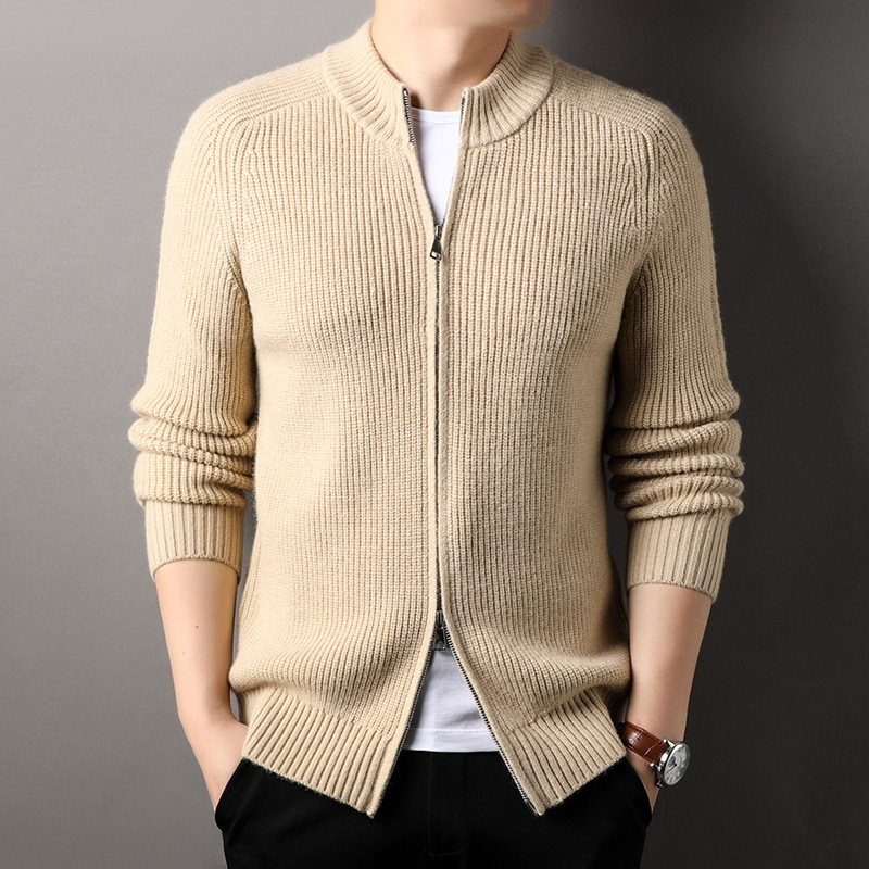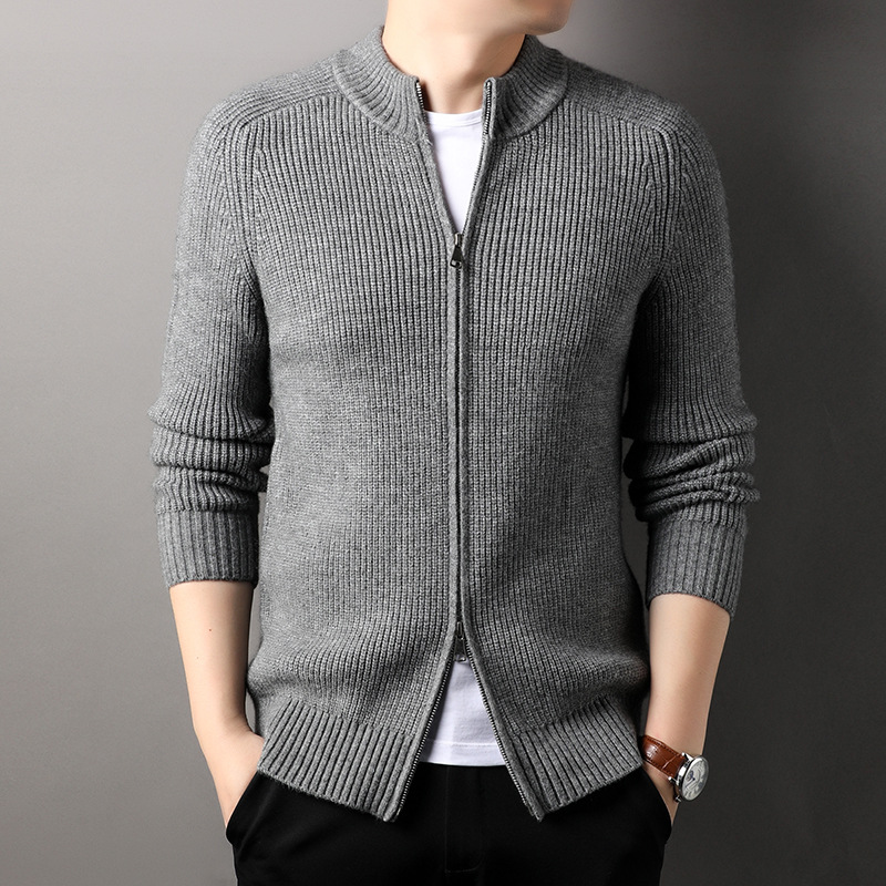 YINGAO 스트라이프 자카드 카디건 스웨터 남성 가을과 겨울 새로운 더블 지퍼 스포츠 청소년 니트 스웨터 도매