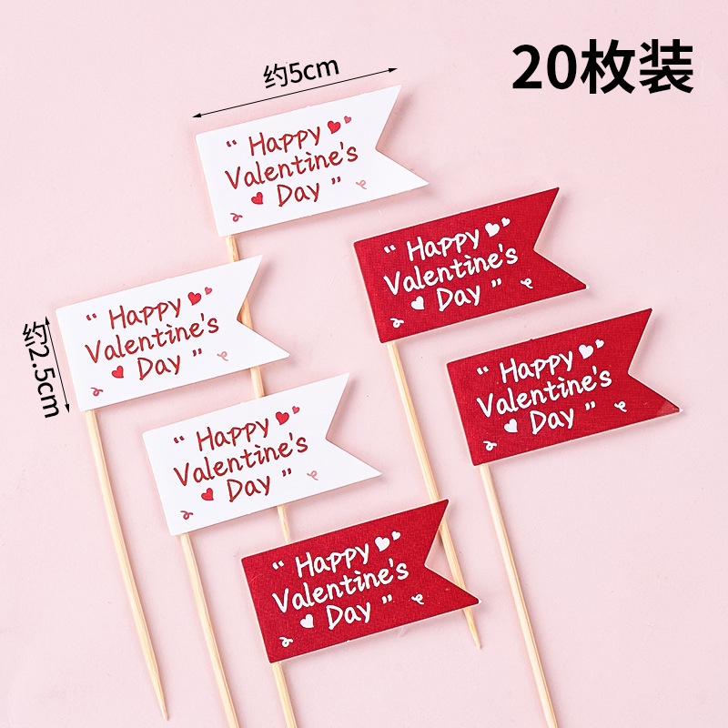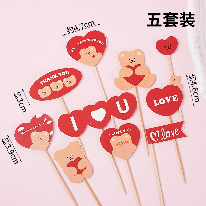 해피 중국 발렌타인 데이 케이크 장식 만화 사랑 스티커 라인 개 아름다운 커플 고백 작은 플래그 장식