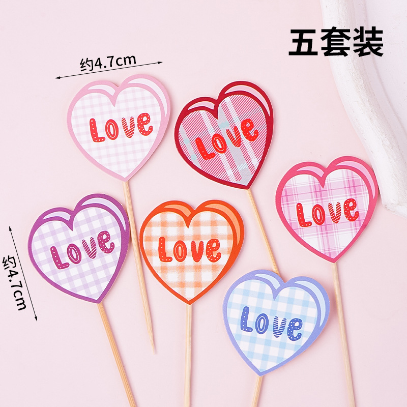 해피 중국 발렌타인 데이 케이크 장식 만화 사랑 스티커 라인 개 아름다운 커플 고백 작은 플래그 장식스토어 가기