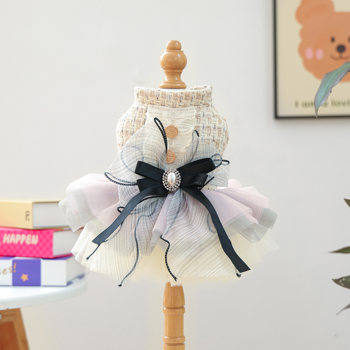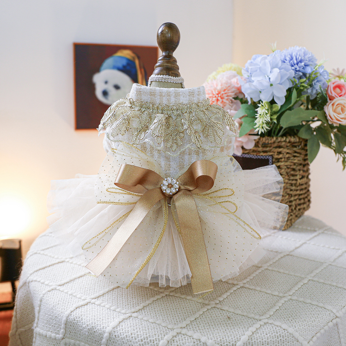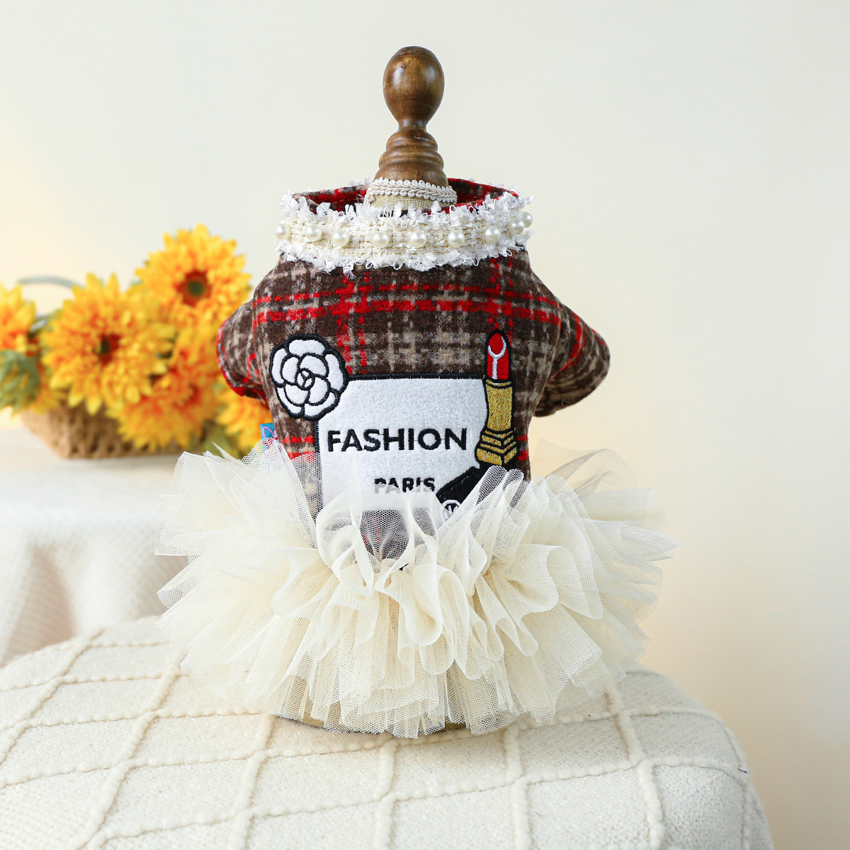즉시 배송 가능한 인기 애완견 및 고양이 의류, 소스 공장에서 직접 공급하는 가을 겨울용 작은 프랑스 스타일 드레스 모음스토어 가기