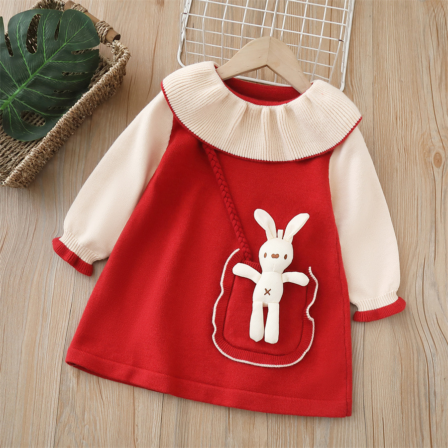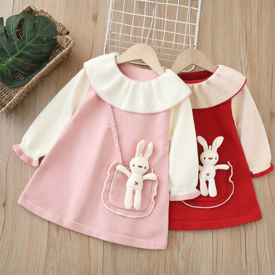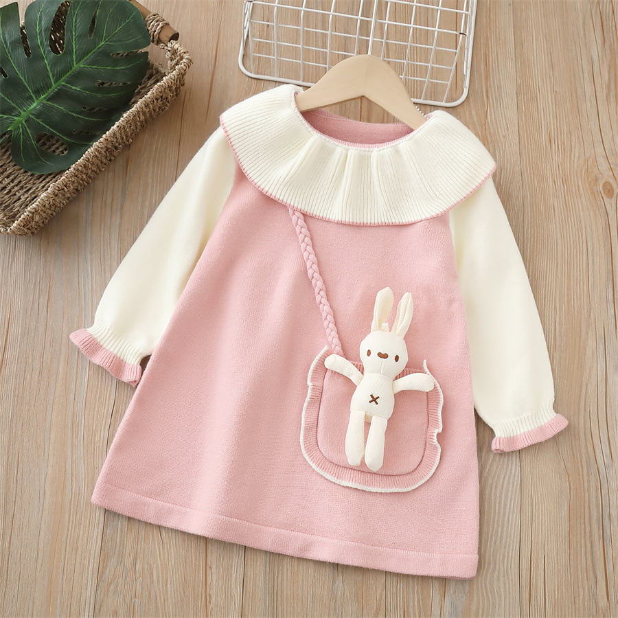 여아용 스웨터 드레스 2024 가을 겨울 신상 백팩 스타일 귀여운 드레스