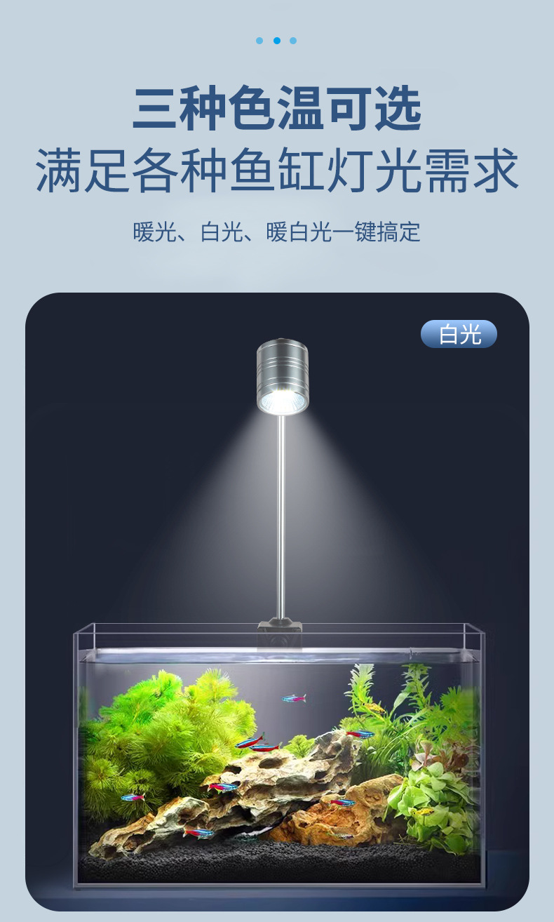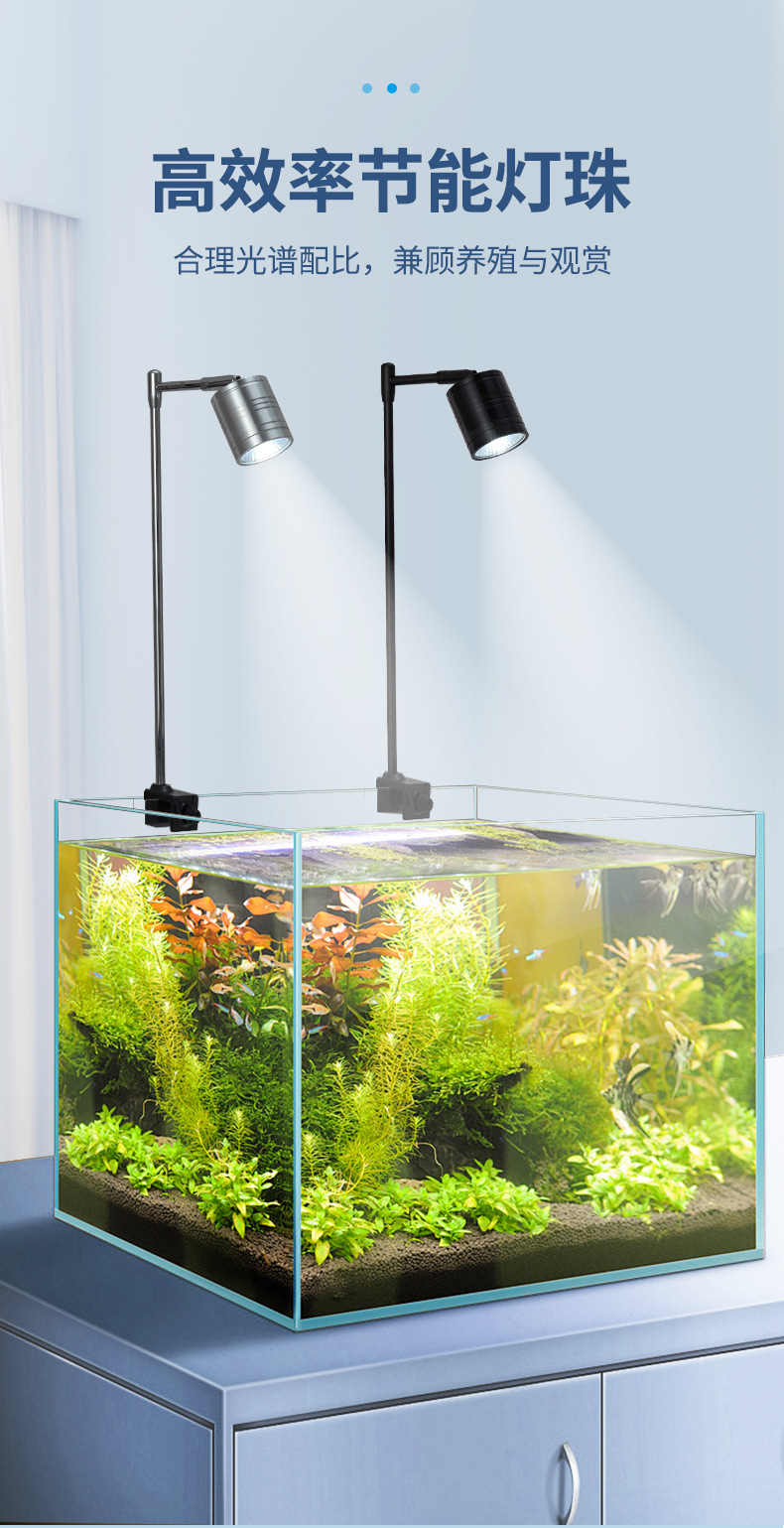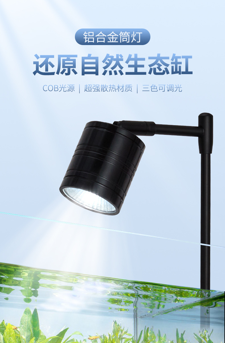 전체 스펙트럼 다운 라이트 작은 LED 물고기 탱크 스포트라이트 알루미늄 합금 조경 라이트 스트림 물 및 육상 탱크 남미 스포트라이트 COB 라이트