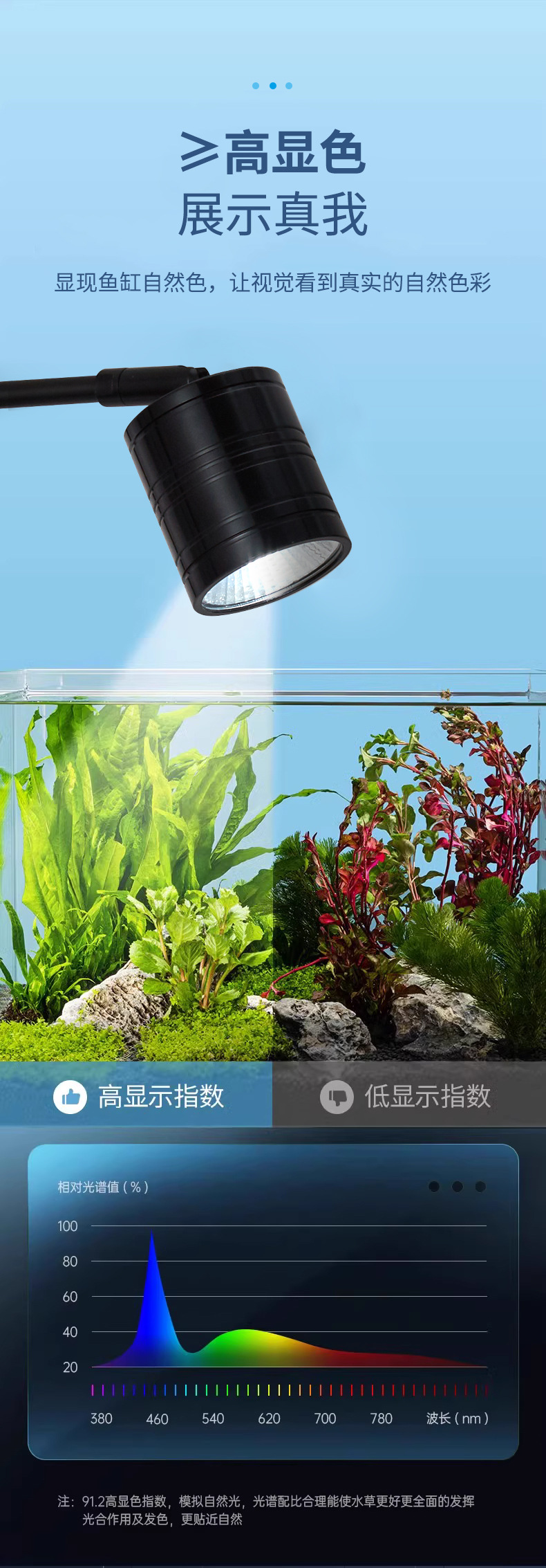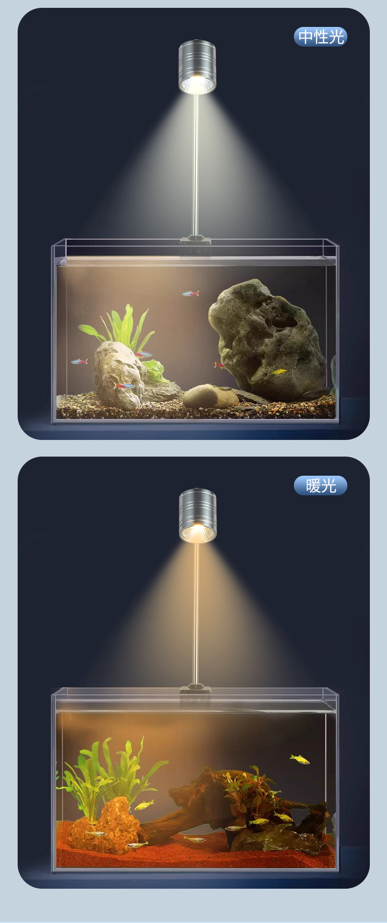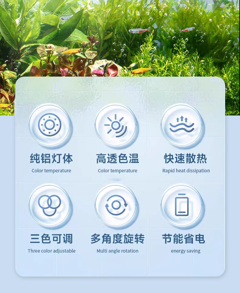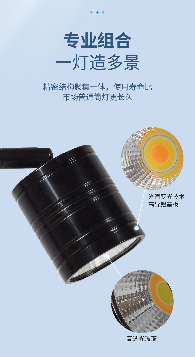 전체 스펙트럼 다운 라이트 작은 LED 물고기 탱크 스포트라이트 알루미늄 합금 조경 라이트 스트림 물 및 육상 탱크 남미 스포트라이트 COB 라이트