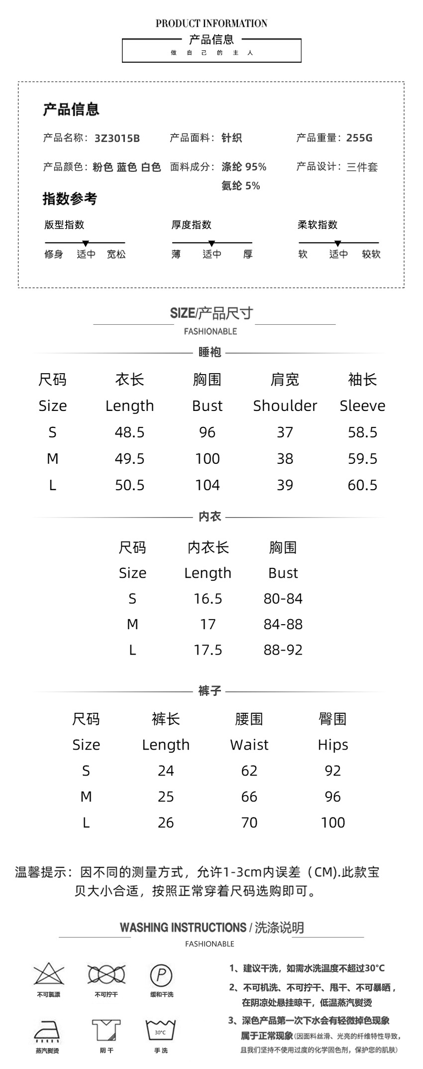 • 성분: 폴리 에스테르 95%; 스판덱스 5%