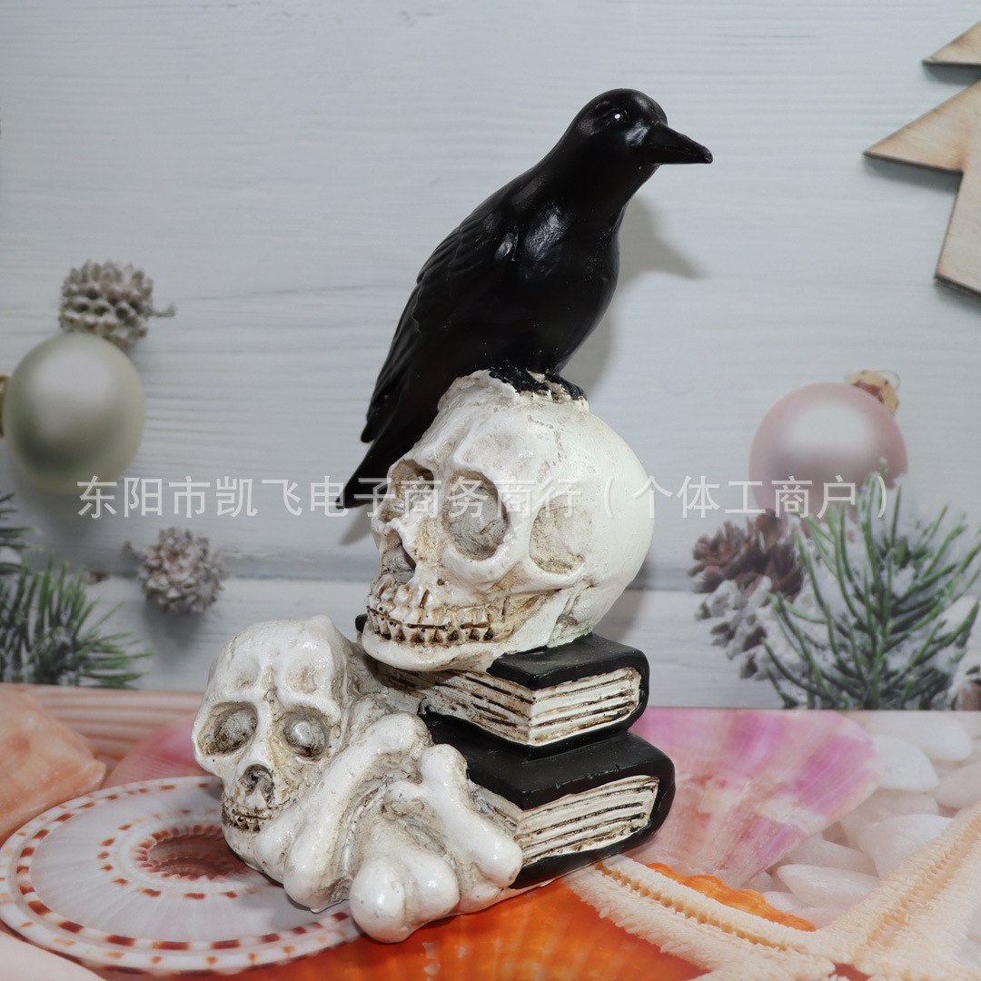 국경 간 새로운 죽음의 두개골 동상 수지 공예 장식품 데스크탑 까마귀 두개골 장식 장식품