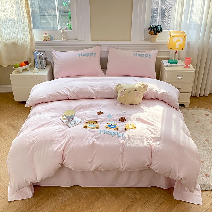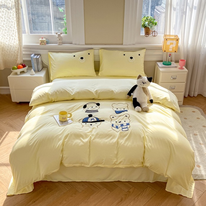 2024 새로운 만화 수건 자수 시리즈 퀼트 커버 침대 시트 침실 4 종 세트