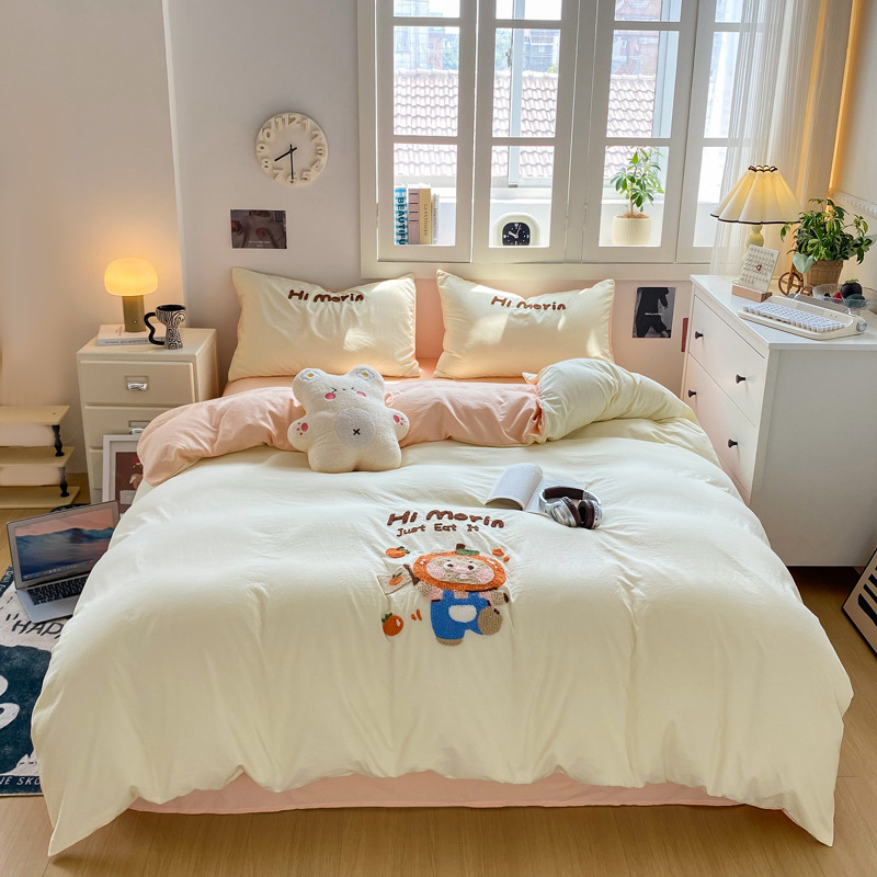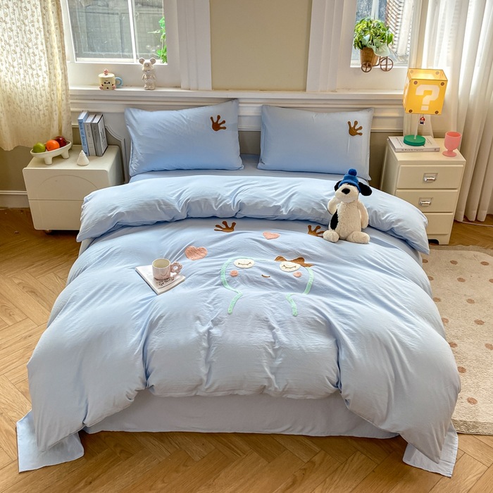2024 새로운 만화 수건 자수 시리즈 퀼트 커버 침대 시트 침실 4 종 세트스토어 가기