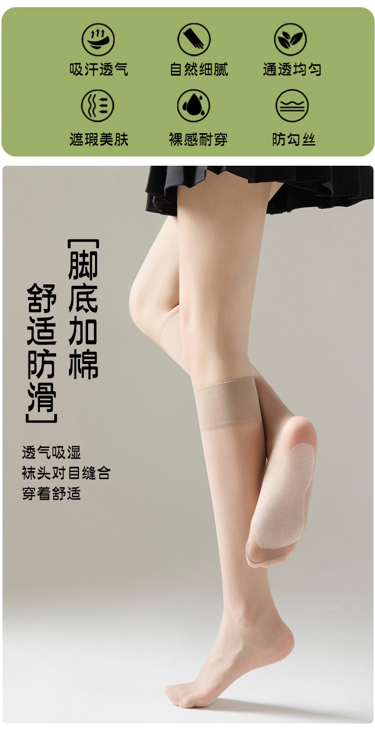 여름 얇은 여성의 겉옷 JK 미끄럼 종아리 양말 블랙 하프 튜브 양말 안티 후크 보이지 않는 피부색 얇은 튜브 양말스토어 가기