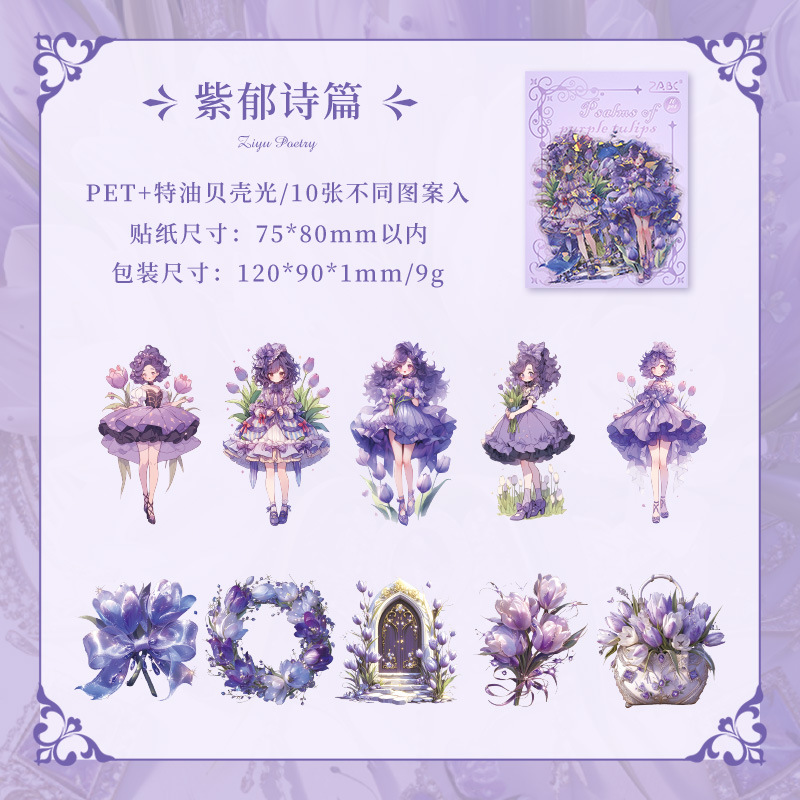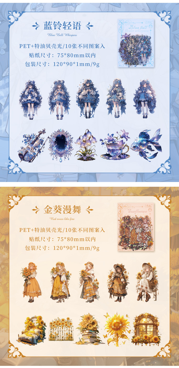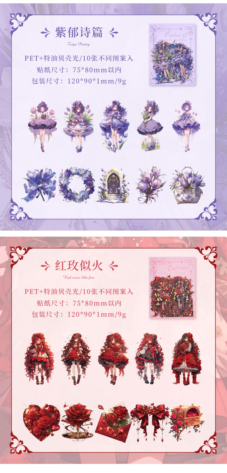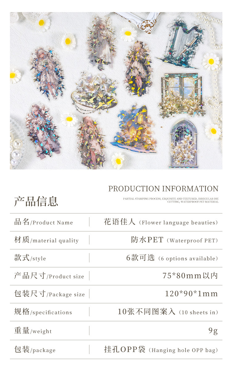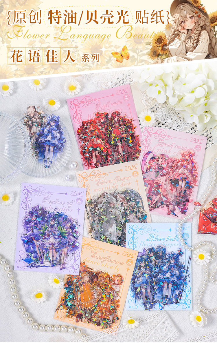 꽃 언어 아름다움 레이저 특수 오일 투명 방수 애완 동물 스티커 가방 DIY 손 계정 일기 소재 쉘 라이트 소녀 스티커스토어 가기