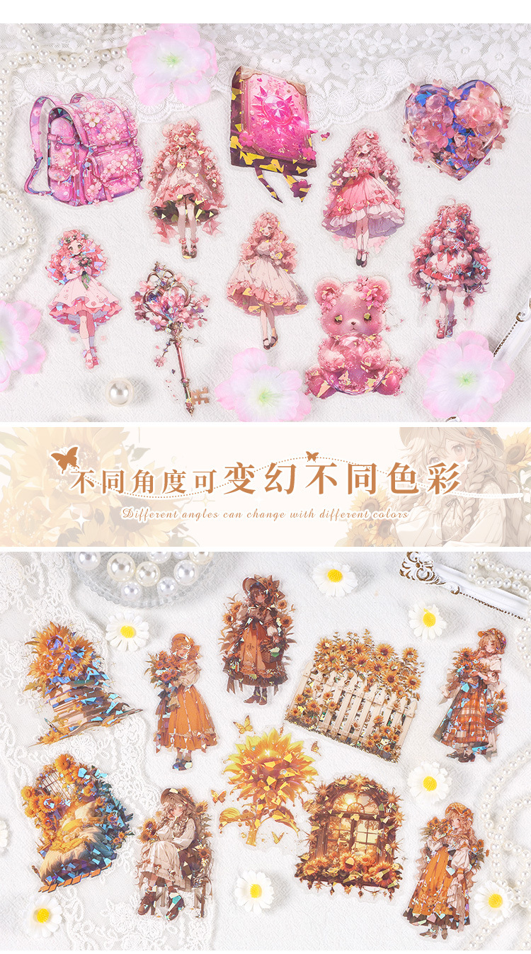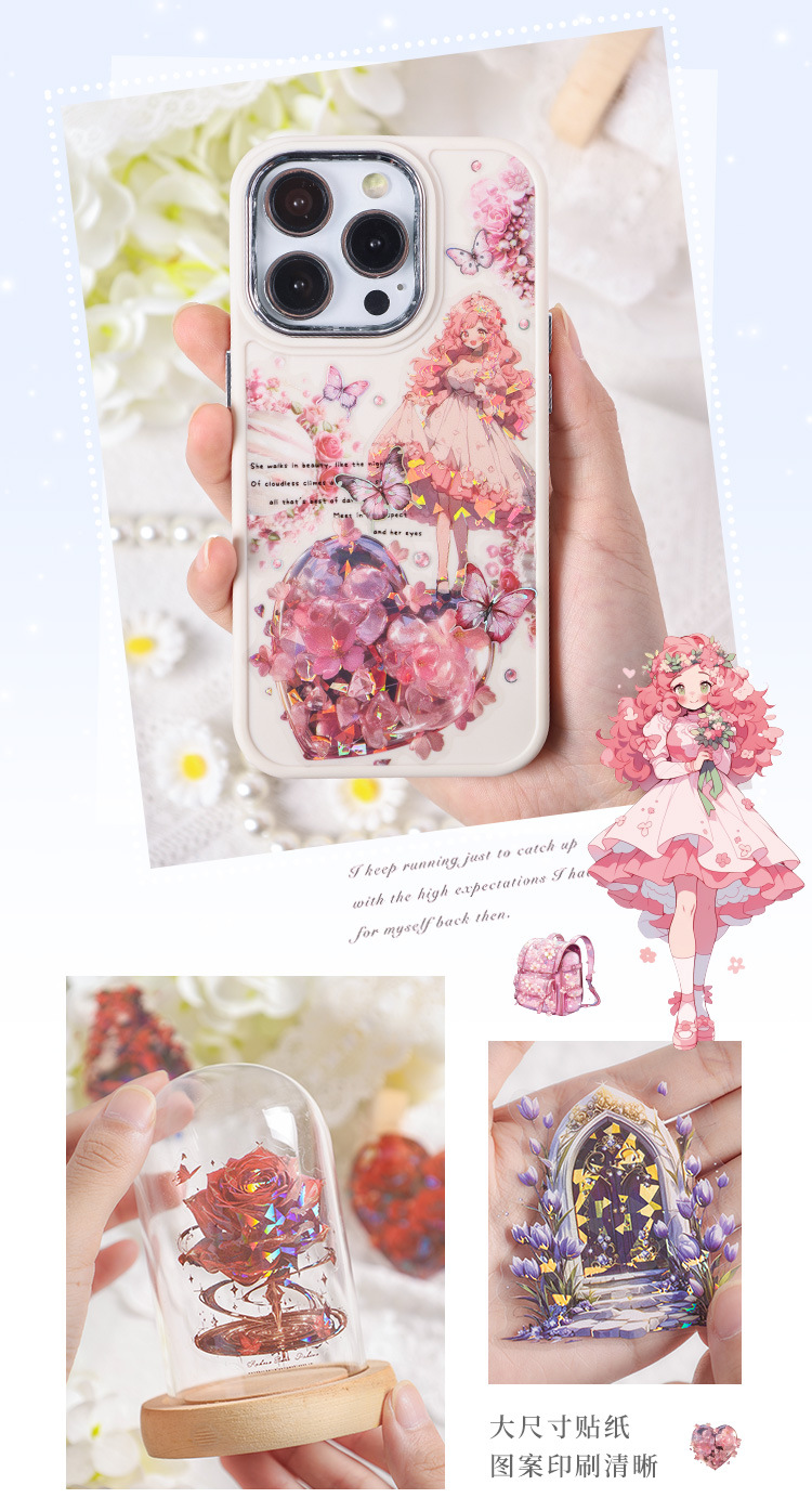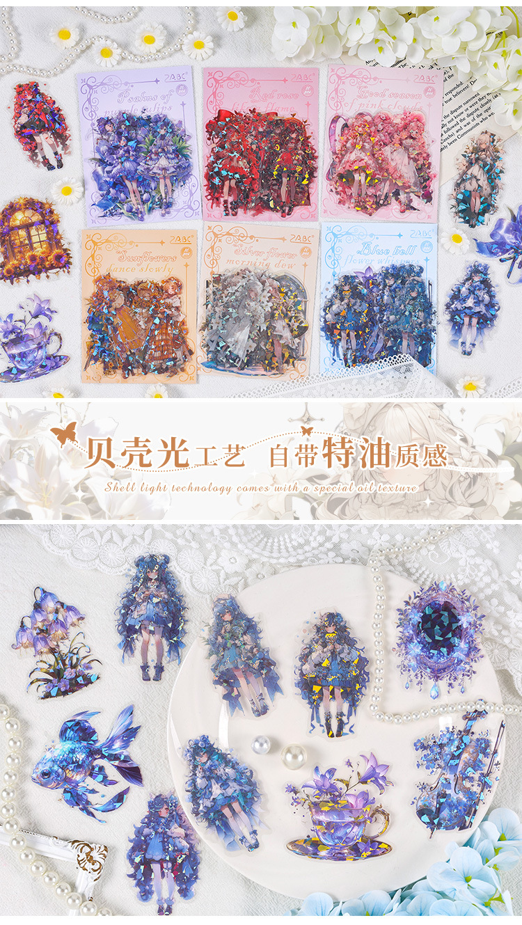 꽃 언어 아름다움 레이저 특수 오일 투명 방수 애완 동물 스티커 가방 DIY 손 계정 일기 소재 쉘 라이트 소녀 스티커