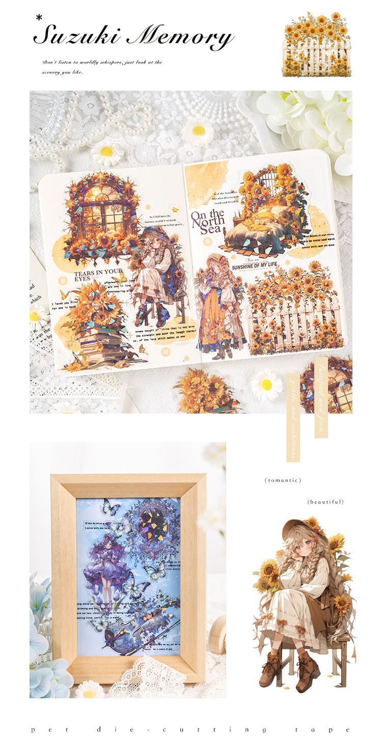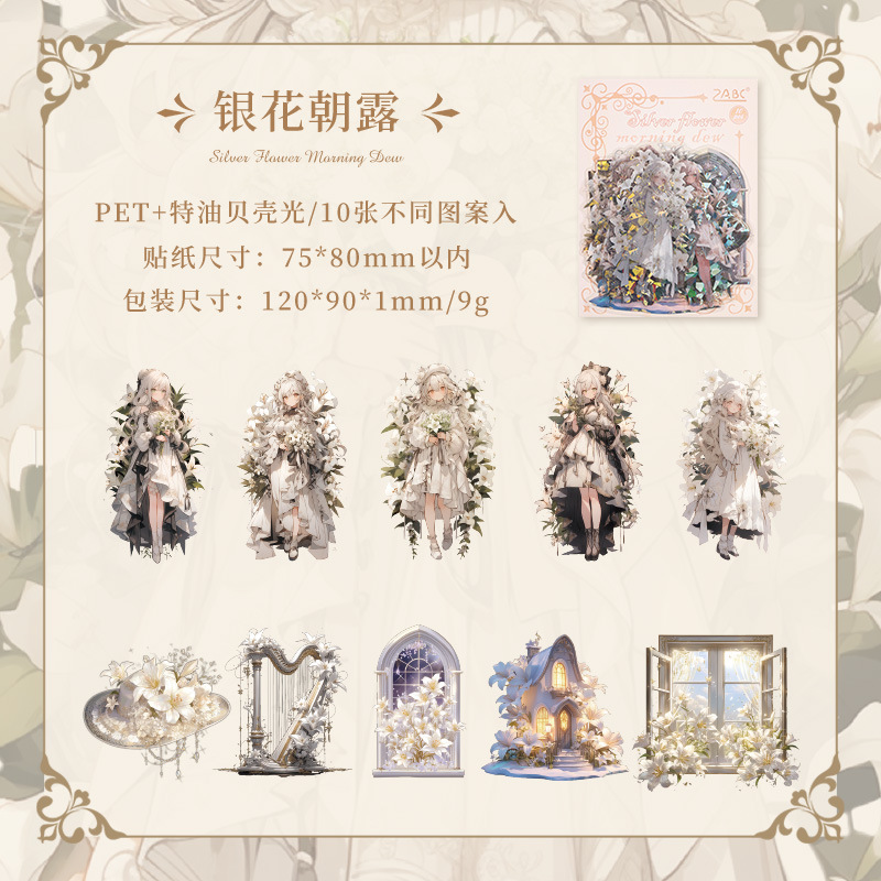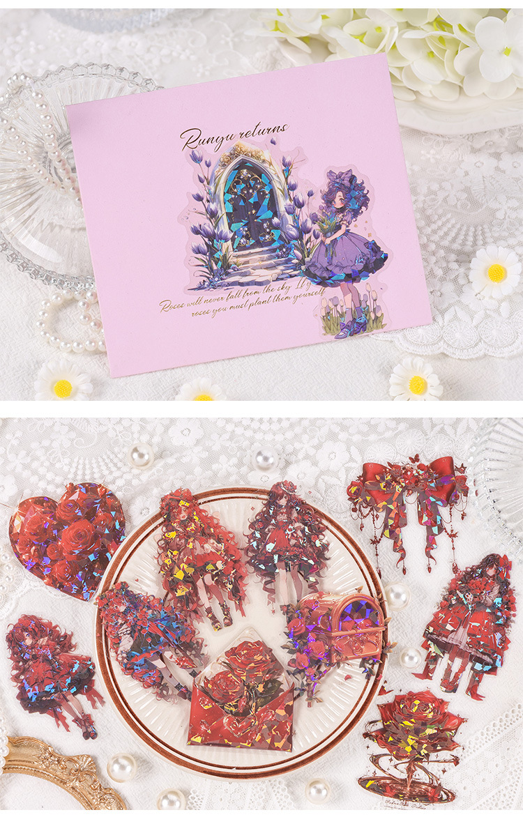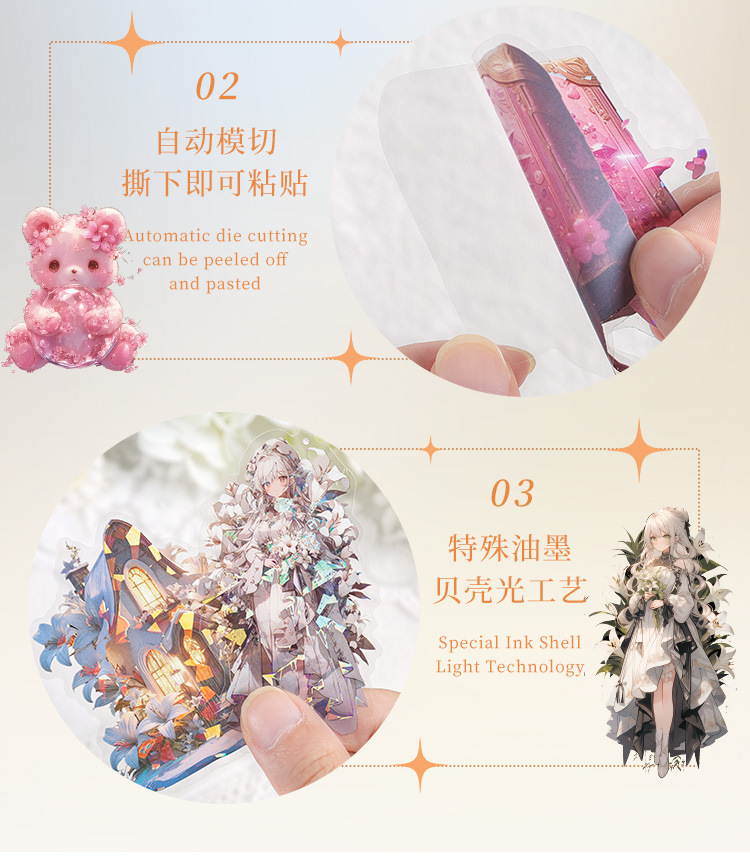 꽃 언어 아름다움 레이저 특수 오일 투명 방수 애완 동물 스티커 가방 DIY 손 계정 일기 소재 쉘 라이트 소녀 스티커
