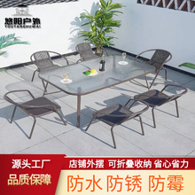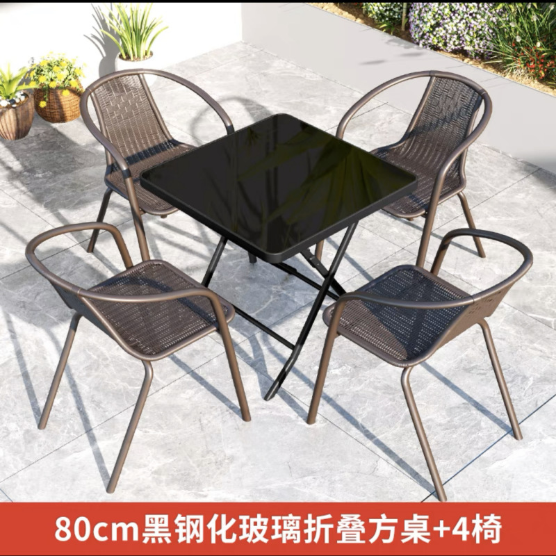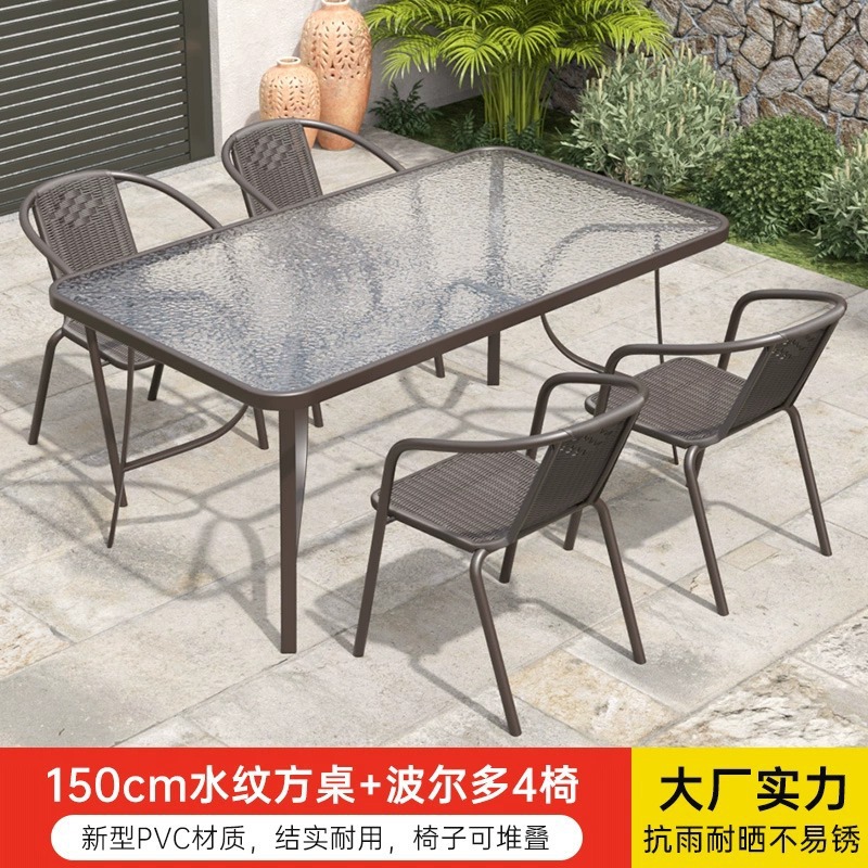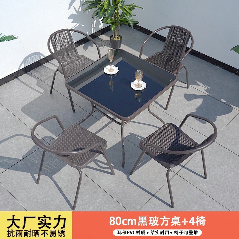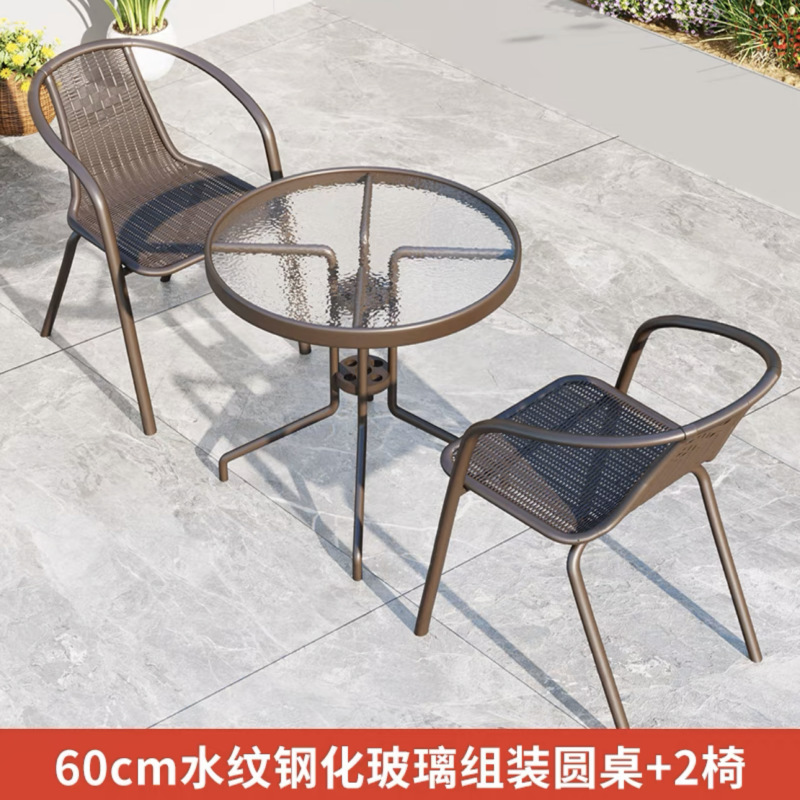 야외 테이블과 의자 우산 조합 햇빛 야외 야외 야외 우유 차 커피 숍 캐주얼 철 야외 등나무 의자스토어 가기
