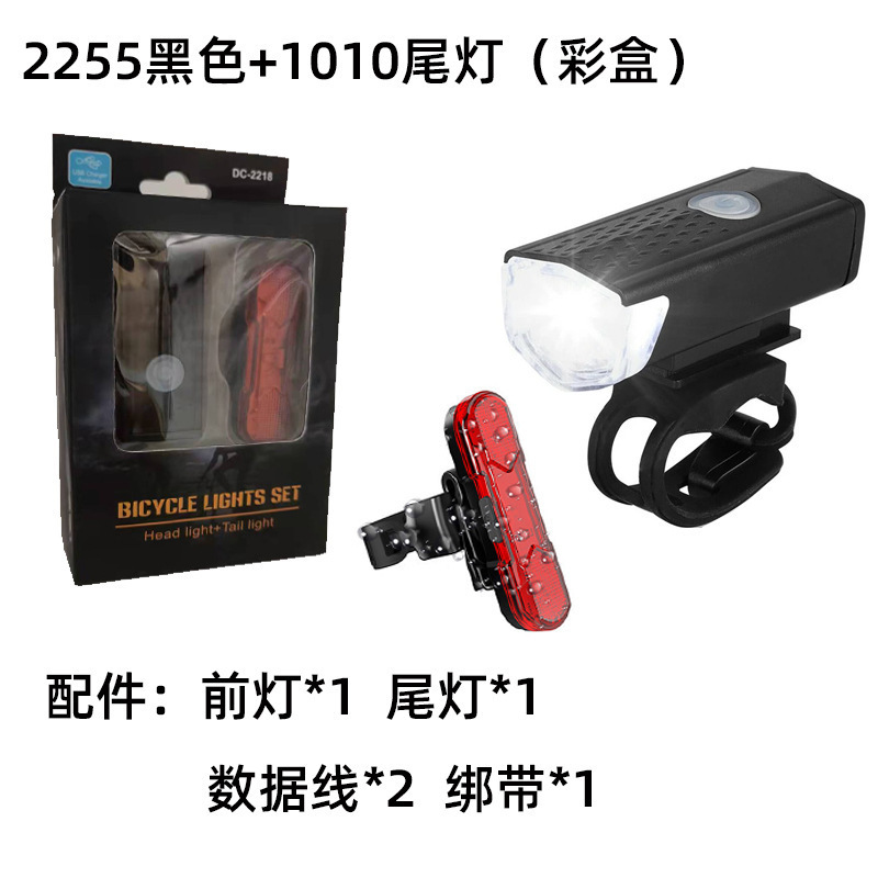 자전거 헤드라이트 USB 충전 야간 라이딩 라이트 경고등 슈퍼 브라이트 라이트 야외 라이딩 세트 산악 자전거 전방 및 후방 라이트