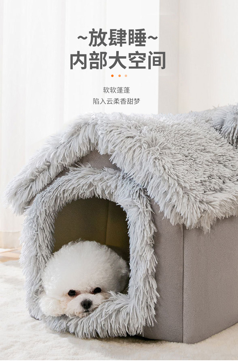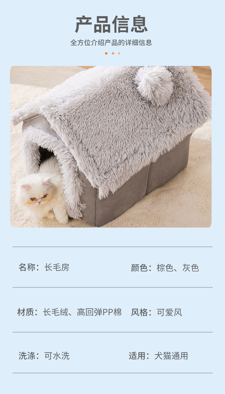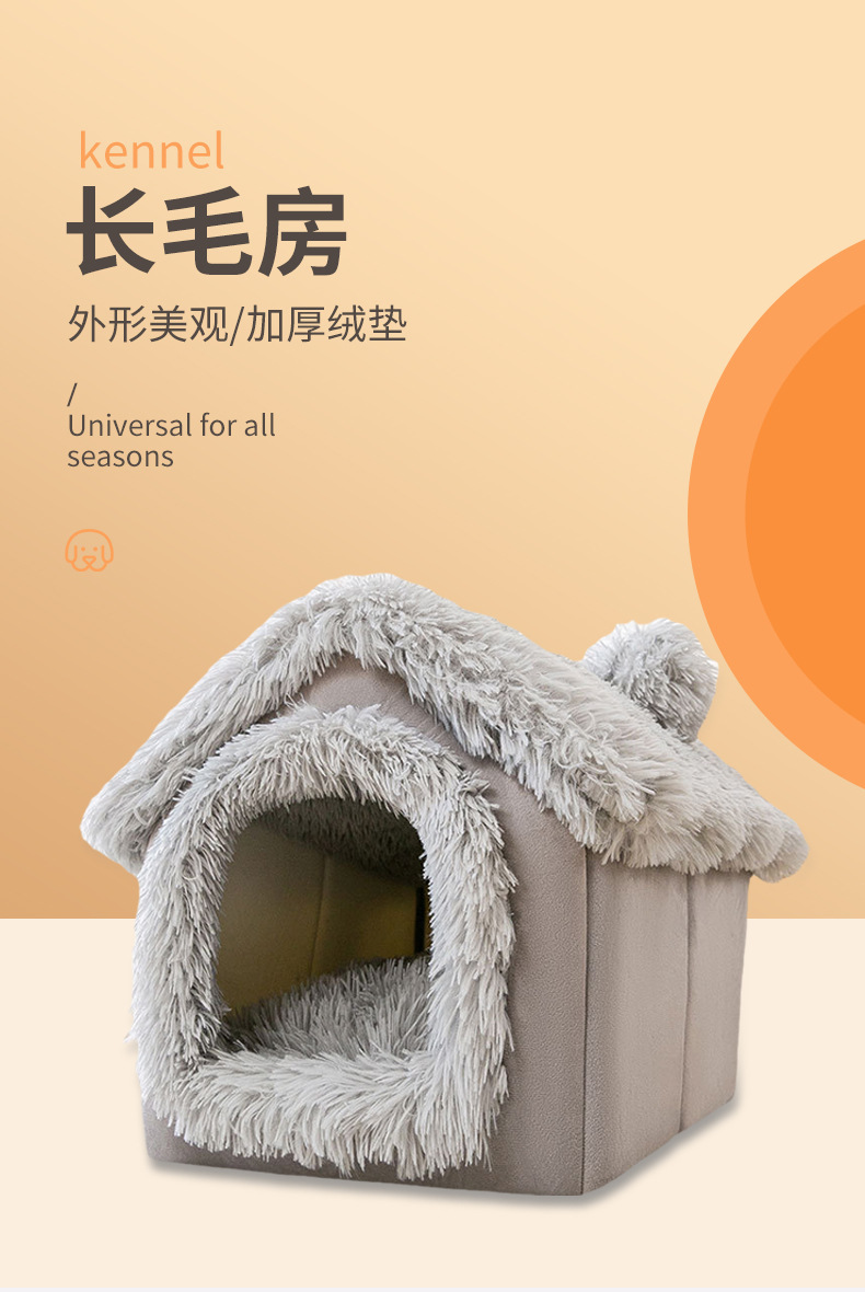 긴털 플러시 소재의 펫하우스, 고양이집, 강아지집, 해외배송 가능, 완전 밀폐형, 따뜻한 고양이 빌라, 탈부착 및 세탁 가능