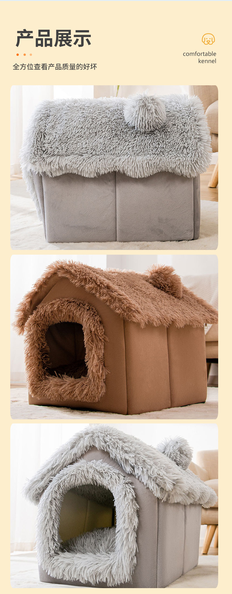 긴털 플러시 소재의 펫하우스, 고양이집, 강아지집, 해외배송 가능, 완전 밀폐형, 따뜻한 고양이 빌라, 탈부착 및 세탁 가능스토어 가기