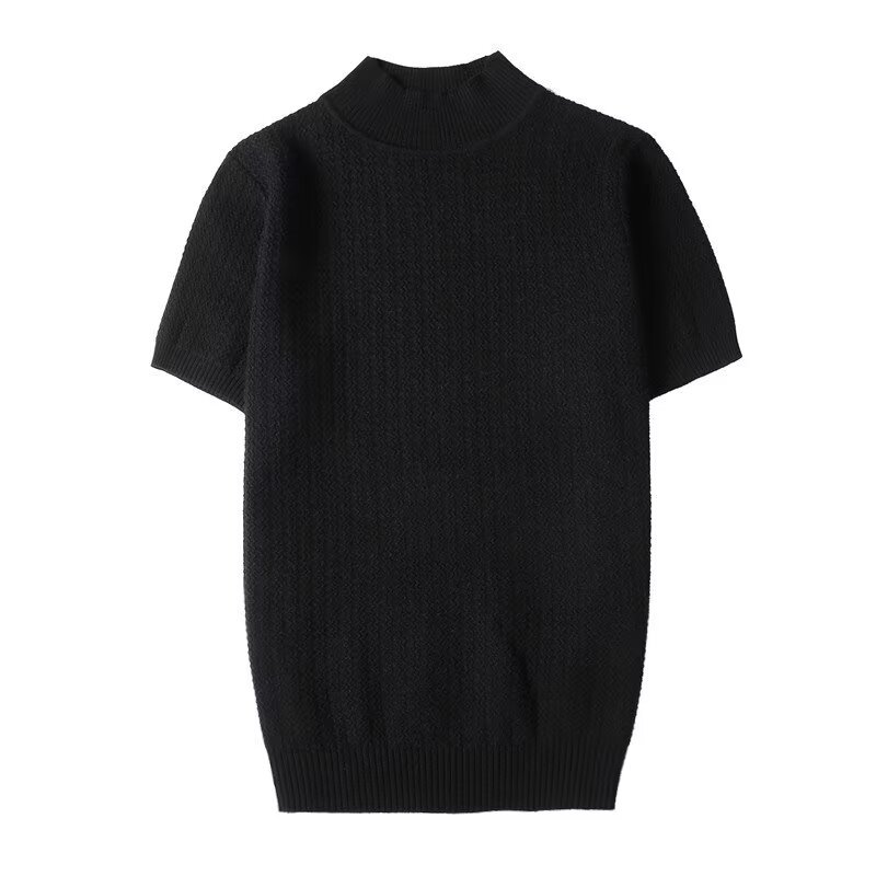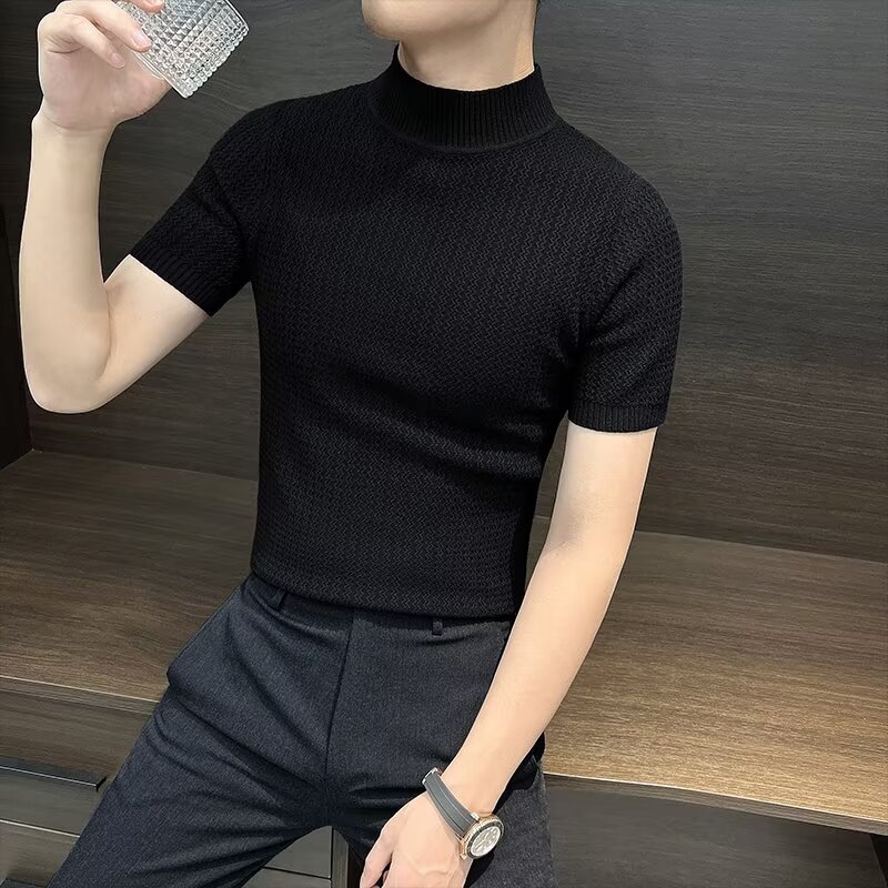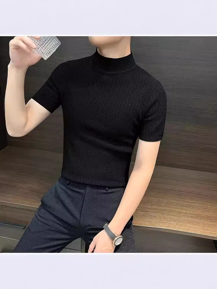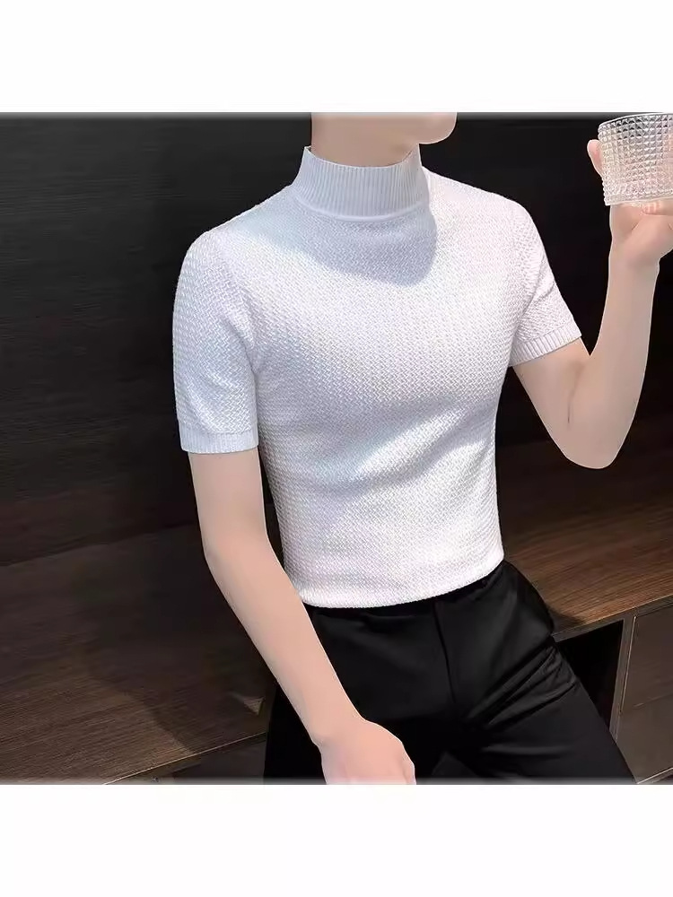 남성용 하프 하이 칼라베이스 셔츠 반소매 봄 및 가을 슬림 반소매 스웨터 내부 타이트 미드 칼라 티셔츠 니트 스웨터