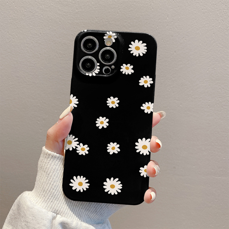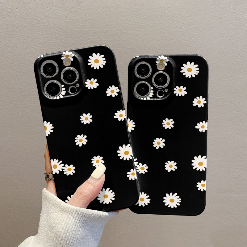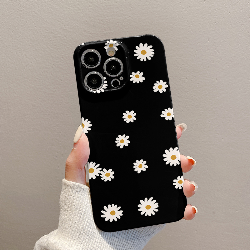 간단한 블랙 데이지 휴대 전화 케이스 아이폰 15 보호 케이스 애플 14promax 틈새 고급 감각스토어 가기