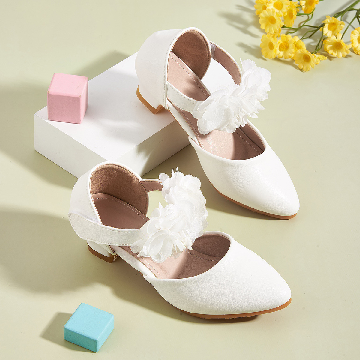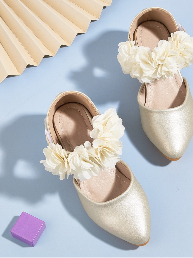 2025 새 신발 새 하이힐 포인팅 꽃 빈 공주 샌들 소녀 어린이 공연