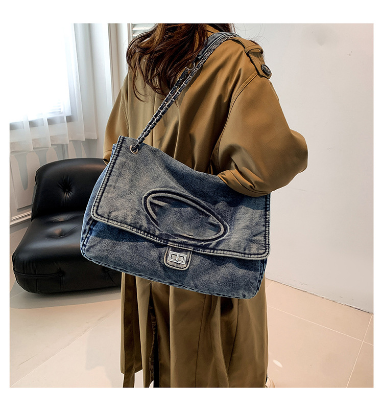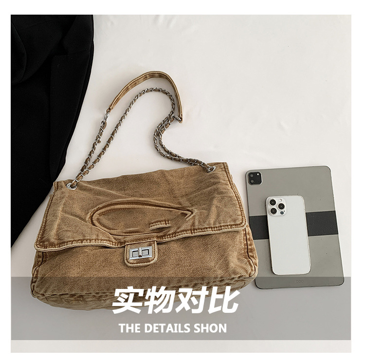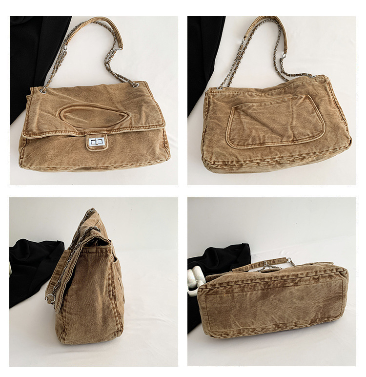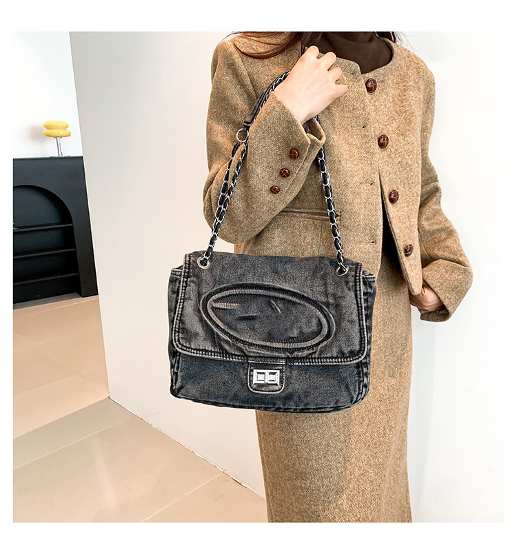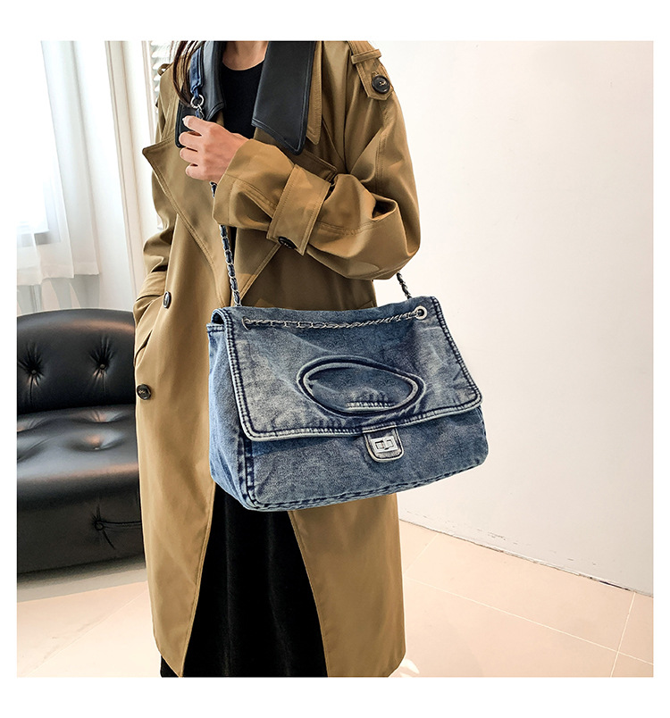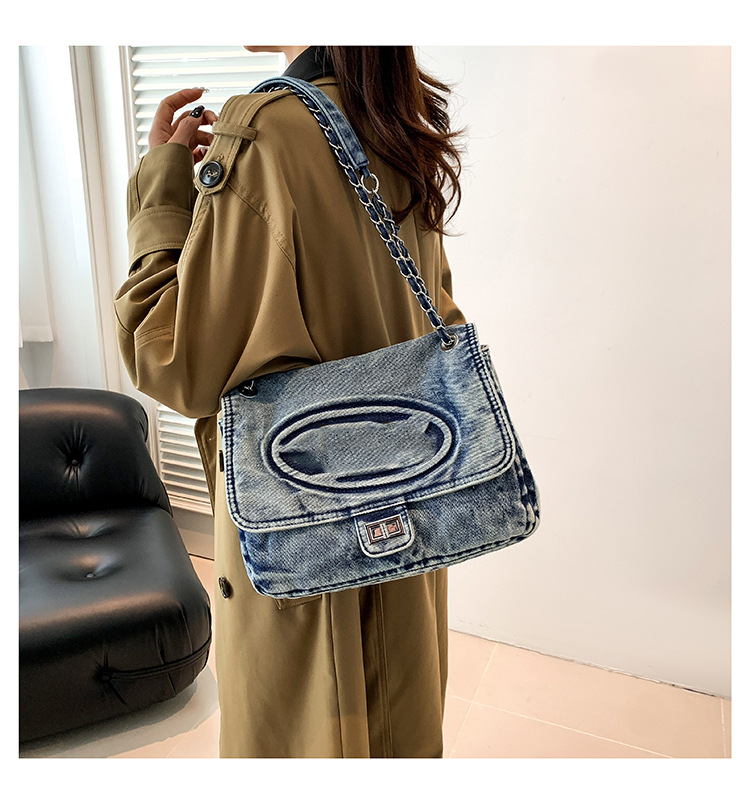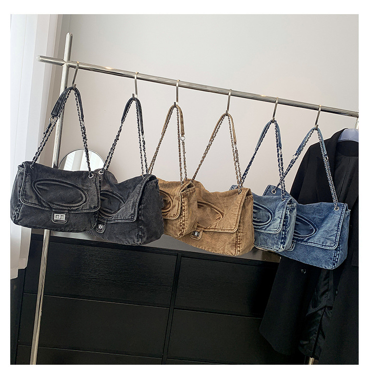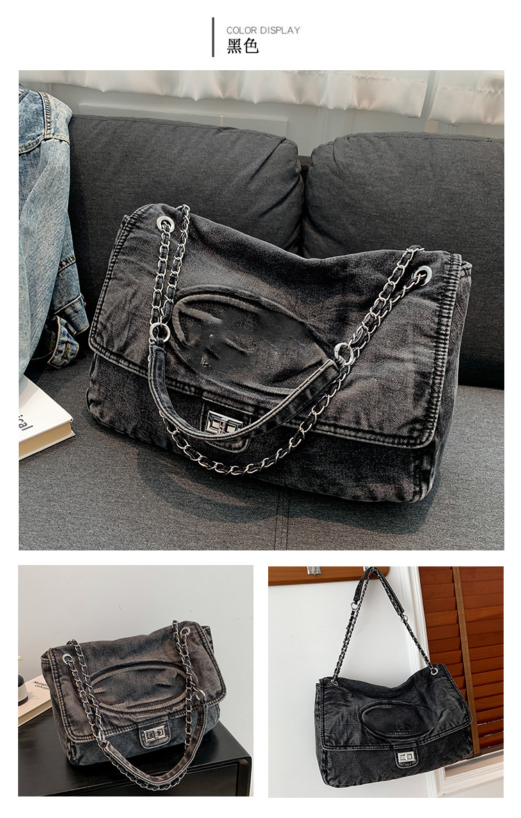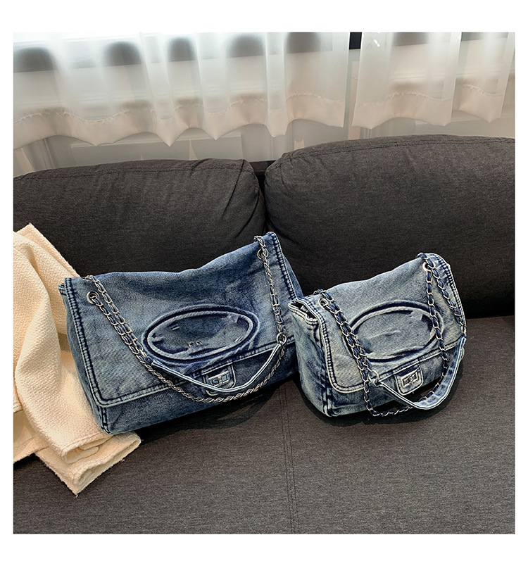 국경 간 세척 데님 스트레이 백 체인 징글 백 대용량 가방 여성 폐기물 토양 바람 교차 단일 어깨 가방스토어 가기