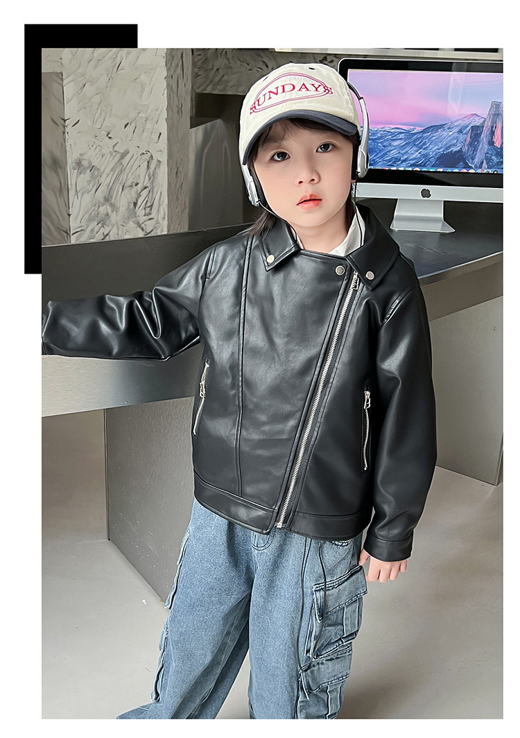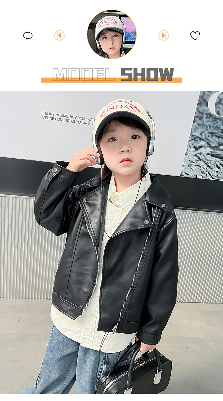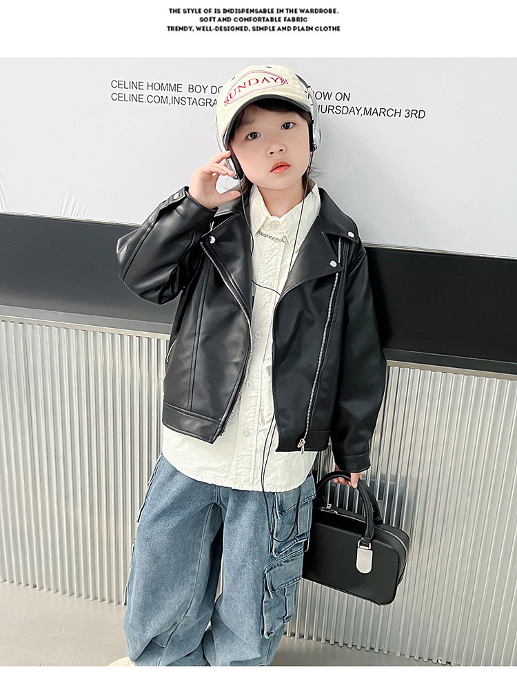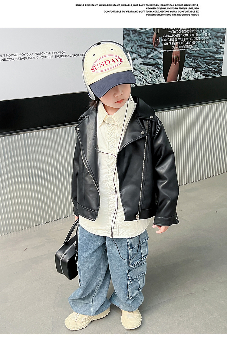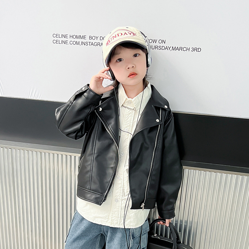 어린이 가죽 자켓 코트 2024 새로운 어린이 기관차 봄 옷 봄과 가을 튀긴 거리 소년 소녀 가죽 옷 어린이 옷스토어 가기