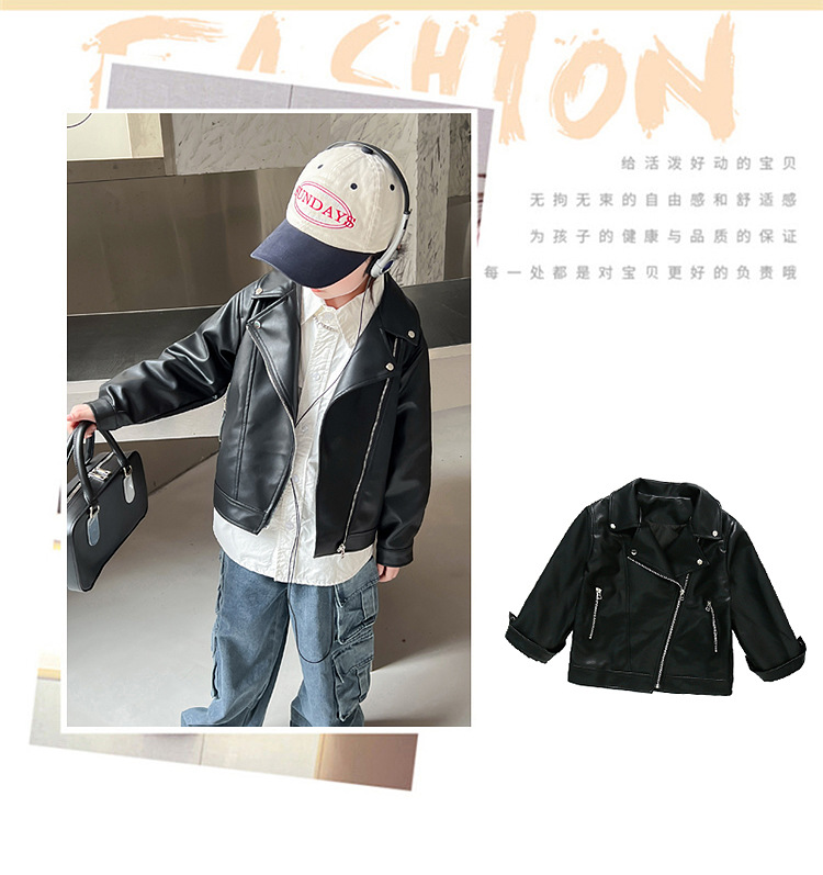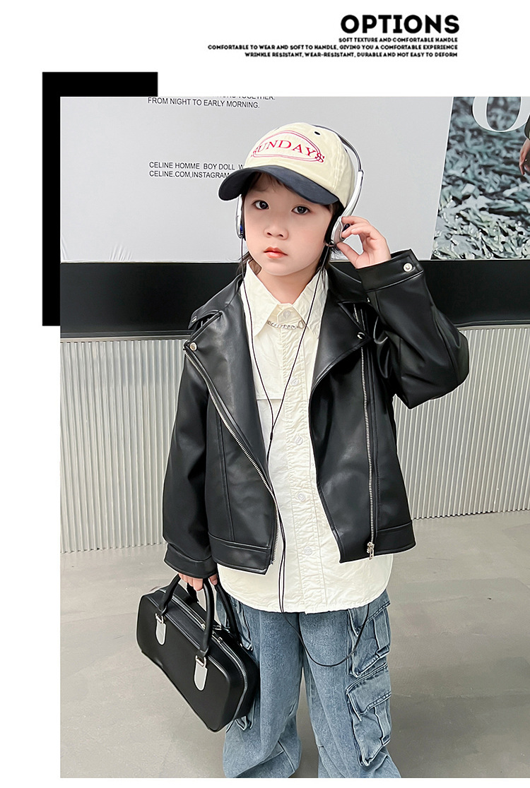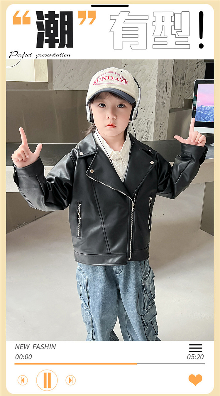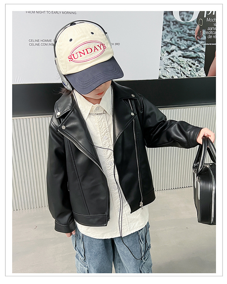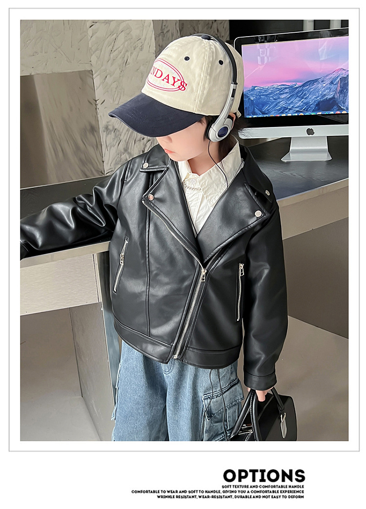 어린이 가죽 자켓 코트 2024 새로운 어린이 기관차 봄 옷 봄과 가을 튀긴 거리 소년 소녀 가죽 옷 어린이 옷스토어 가기