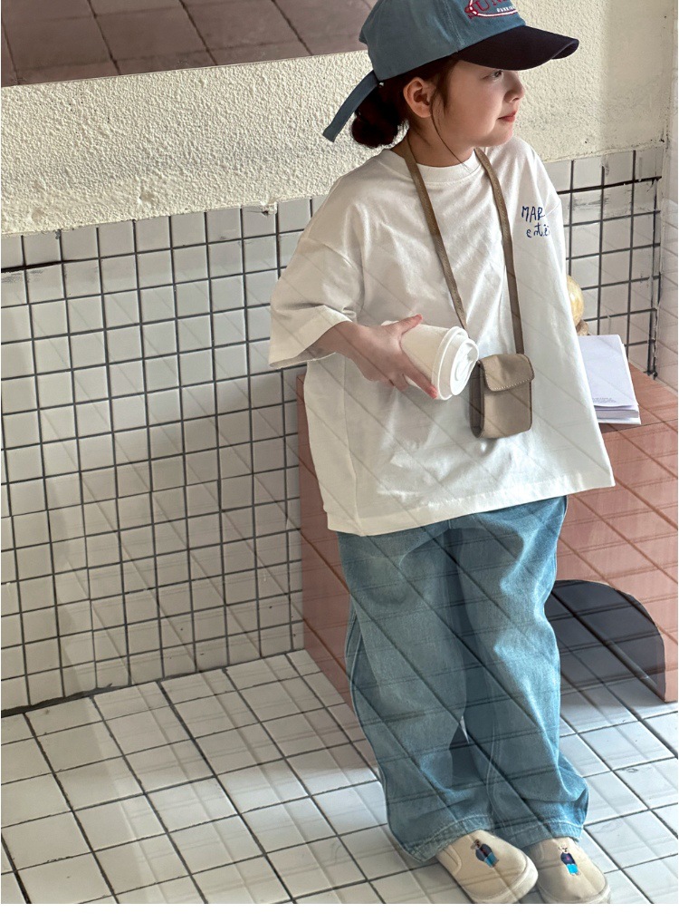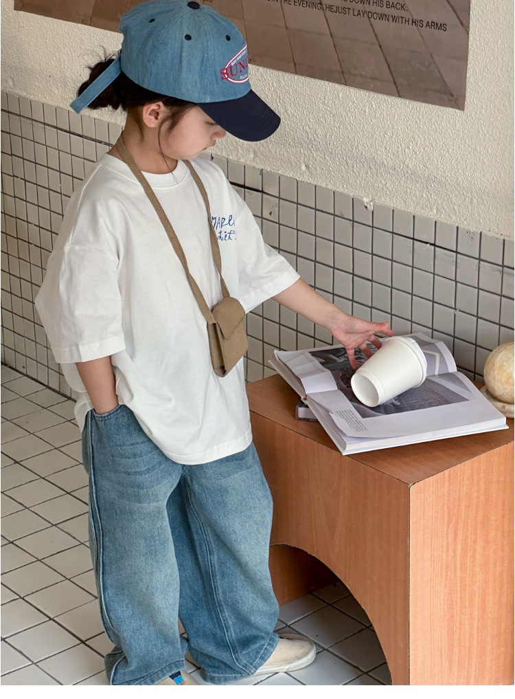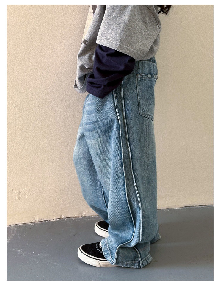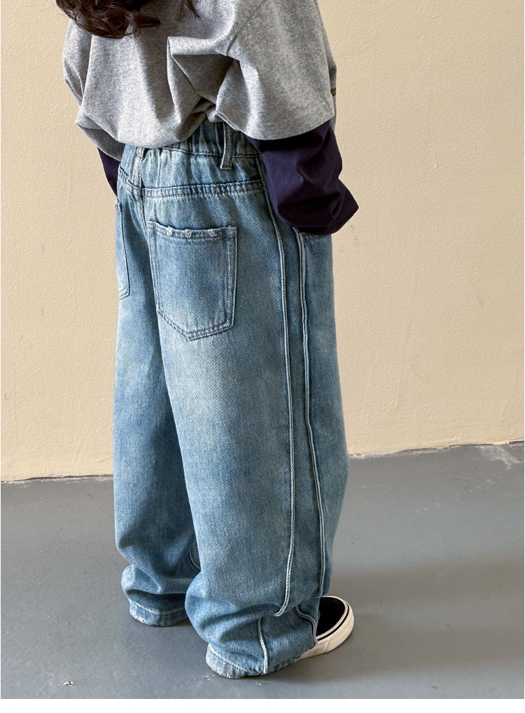 여아 청바지 봄, 가을 2025 신상 중학생 캐주얼 가을 바지 아동 루즈한 스트레이트 팬츠 트렌디스토어 가기